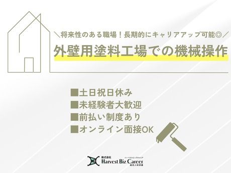 仕事内容 具体的には 住宅用外壁に使用される塗料の調色・機械オペレーター業務をお任せします◎ 一斗缶に入った塗料をマシンに投入し、 量の計測や材料の移動を行います♪ 難しい作業はなく、未経験の方でも安心して始められます◎ 将来的には、マネジメントや生産管理など 幅広い業務へのステップアップも可能です!