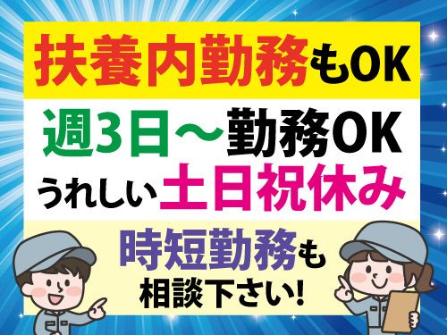土日祝休み/週3日~勤務OK/扶養内勤務・時短勤務OK!