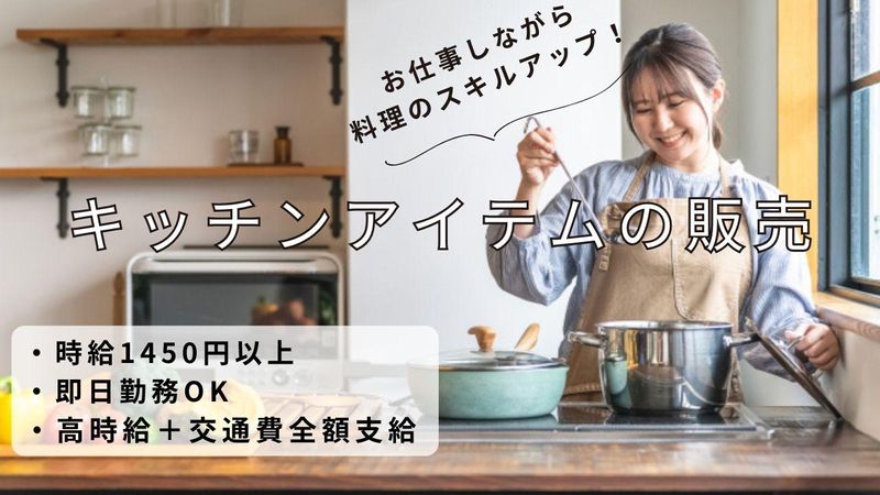 仕事内容 / お料理が得意!! お料理が好きな方~!! \ +お仕事しながら料理のスキルアップも+ ======================== 美味しい食事を作る為に必要な 様々な商品を販売します! ======================== 【お仕事内容】 〇接客販売、レジの対応。 ・お鍋 ・圧力鍋 ・フライパン ・キッチンアクセサリー ・キッチンツール を中心に接客販売。 機能性抜群の為オススメしやすい商品です。 働きながら『私も使ってみたい』と興味が出る事間違いなし! *知識不要:商品については説明やレクチャーが入りますので安心です。 *販売未経験でも料理好きな方活躍出来ます。 〇バックヤード業務 商品到着 ↓ 検品/品出し ↓ 在庫整理/商品移動 接客の他バックヤードのお仕事も。 整理整頓や事務作業等細かい作業が得意な方活かせます。 年齢・販売経験不問! 料理が好きな方、興味ある方是非ご応募下さい。