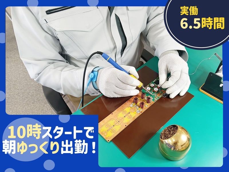 求めている人材 20代~30代が活躍している職場です。 ◆電子工作および電子回路設計経験者 ◆工学部出身(電子工学尚よし) ◆半田付け経験者 どれか1つでもあればOK! 経験年数は問わず、キャリアが浅い方でも安心してご応募ください。