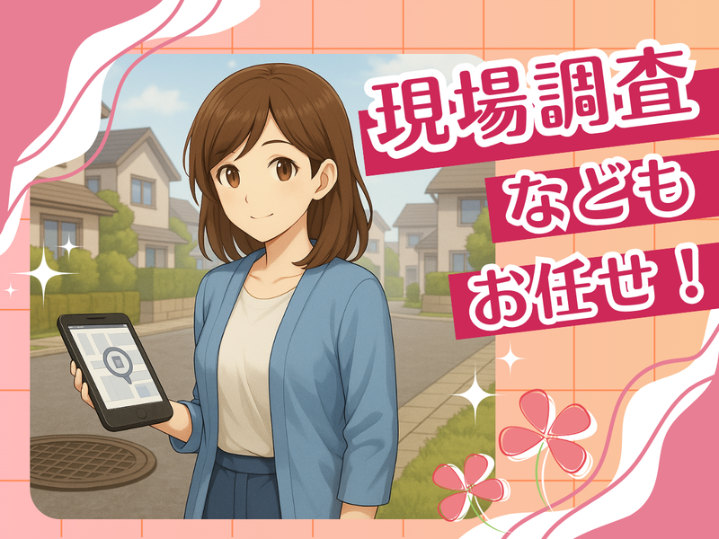 仕事内容 ” 現場調査 ”×” 事務 ” 「ずっと室内は息が詰まる…」 「身体も動かしたい」 という方にピッタリ! ⭐「ただの事務」ではありません⭐ ※内勤・外勤=9:1の割合になります。 ✨ 事務経験ある方の募集です! ✨ =-=-=-=-=-=-=-=-=-=-=-=-= ✨この求人のポイント✨ =-=-=-=-=-=-=-=-=-=-=-=-= ✅一生モノの「手に職」! - CAD・水道知識・申請ノウハウ。 AI時代でも無くならない専門スキルを 身につけられる! ✅頑張りは給与で還元! - 賞与年2~3回!残業代は全額支給! 「バリバリ働いて稼ぎたい」 という方も応援✊ ✅国家資格も取得可能! - 費用は全額会社負担! 合格後は毎月手当も支給✨ 試験対策講座やJWCADの講習会(2回講座) なども開催しております。 CAD経験がない方もしっかりサポート◎ =-=-=-=-=-=-=-=-=-=-=-=-= 仕事内容について =-=-=-=-=-=-=-=-=-=-=-=-= 水道工事に必要な書類や図面作成を お任せします。 具体的には… ・見積もり ・申請書類 ・図面作成(CAD) ⭐正確な図面を作るために、 実際に現場を見に行くことが 重要なんです! \\ 未経験でも安心の3ステップ✨ // 【STEP 1】現場調査へGO! 見積もりを作るために、社用車で現場へ。 図面データだけでは分からない 「リアルな状況」を目視で確認します。 ●道路の幅をメジャーで計測 ●マンホールや電柱の位置を確認 ●「ここに障害物があるから、 掘り方が変わるな…」とチェック! 【STEP 2】事務所で図面作成 調査メモと役所のデータを元に、 専用ソフト(CAD)で図面や見積書を 作成します。 ⏩CAD操作は難しくありません! 段階的にお教えしますので、 ご安心くださいね! 【STEP 3】役所へ申請 書類を市役所へ提出し、工事の許可を もらいます。 役所の方や現場監督と打ち合わせも 行います。 ⭐経験が全て自分の知識や 効率になるので、 ドンドン成長できる環境ですよ!