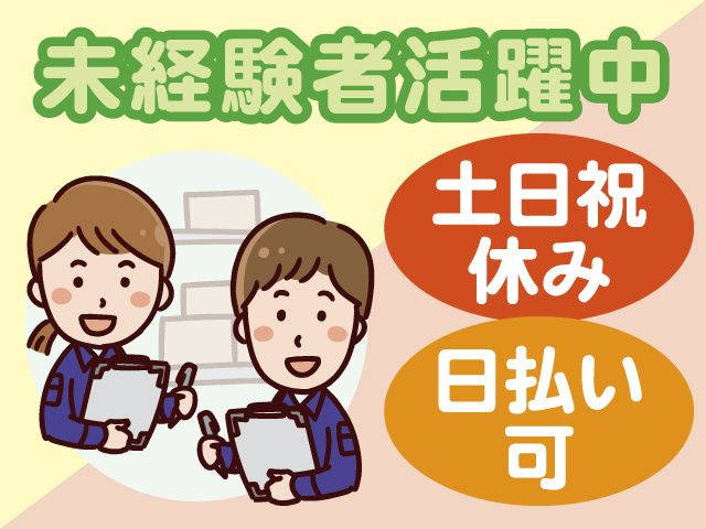仕事内容 未経験者活躍中 年齢不問 土日祝休み、長期連休もあり 空調完備で一年中快適 日払いあり(規定有) お友達やご家族での応募もOK 20代・30代・40代・50代の男女活躍中 久喜市に綺麗な医薬品を扱っている 物流倉庫内での簡単軽作業です。 手のひらサイズの軽い商品で、重たい物はあまりありません。 カプセルや錠剤など、普段よく見かけるものを扱います。 空調完備なので1年中快適空間で働けます! 【具体的なお仕事内容】 ・小物のデジタルピッキング 専用の機械に表示された商品と個数を カートに入れてく単純な作業です。 商品の場所などもハンディで表示されるので 迷うことなくスムーズに作業できます。 ・仕分け作業 入荷商品を指定の場所へ補充します。 仕分けられた商品を、所定の場所に移動する作業もあります。 重い物の持ち運びはありません。 【勤務地】 埼玉県久喜市 【出張面接OK】 出張面接も行っております。 お仕事相談もできます。 お気軽にお問い合わせください。 【応募方法について】 WEB応募よりエントリーください 24時間受付中です お電話でのご相談、お問い合わせもお気軽にどうぞ! TEL.0283-86-7735(受付/9:00~17:30) となります ~エントリー後の基本スケジュール~ (1)弊社よりご連絡 (2)ご来社(専属コーディネーターとの面談)/出張面接も対応しております (3)現場見学 (4)就業決定