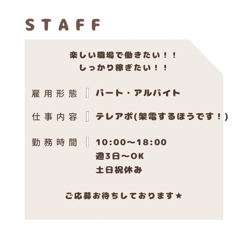 週3日から勤務可 テレアポスタッフ
