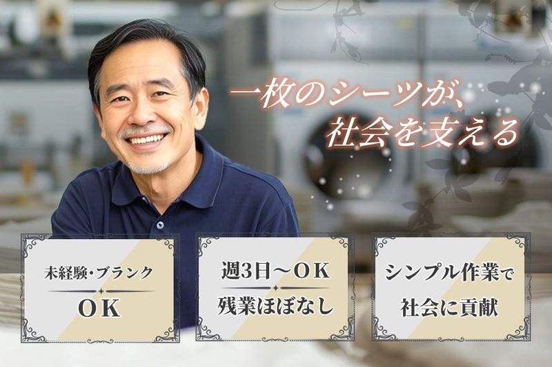 【仕事内容】 ■■■この求人はお電話でも応募可能です■■■ 「求人を見ました」とお電話ください。 電話番号: 0533-85-3358 受付時間: 平日8:30~17:30 ■■■■■■■■■■■■■■■■■■■■■■ 体を動かしながら働きたい方必見! シーツやタオル等のクリーニング物を洗濯し、仕上げるお仕事です。 作業をしながら適度に体を動かすので、座りっぱなしの仕事が苦手な方にピッタリ。 アクティブに働ける環境です! 体を動かしながら、充実の毎日を手に入れませんか? ========== こんな方にオススメ! ========== ■体を動かすのが好きな方 ■毎月安定した収入が欲しい方 ■明るく元気な対応ができる方 ■ポジティブに仕事に取り組める方 ■社会貢献度の高い仕事をしたい方 ■働きながら運動したい方 【具体的なお仕事内容】 配送スタッフが回収してきたリネン類を、工場内で洗濯する仕事です。 (1)機械にリネンをセット。布の端を機械に掛けるだけ。 (2)機械のスタートボタンを押すと、自動でリネンが広がる。 (3)広がったリネンに破れなどがないかチェック。 (4)ロール機という機械にリネンが自動で入る。 (5)プレスされて畳まれたものが出てくる。 (6)仕上がりを確認。 (7)検針し台車へ積み込み完了。 体を動かすのが好きな方や、力仕事にも自信がある方には最適なお仕事です! 週3日から勤務OK!副業や他のお仕事とのかけもちも可能です! ※どの工程の業務をお願いするかは適性を見て判断します。 ※1日7時間勤務が必須となります。 ※※立ち仕事なので、働きながら運動ができます! 業務変更の範囲は原則ありません。 詳細は面接時に説明します。 ========== 未経験でも安心です! ========== はじめは先輩スタッフが丁寧にサポートするので未経験の方もご安心ください! 入社年数なども関係なく、風通しの良い職場ですので、安心してお仕事をはじめていただけます! 明るく、前向きに働きたい方、ご応募お待ちしております! =========== 私たちの社会的な役割 =========== 私たちの仕事は、単なるリネンの交換や洗濯、配送にとどまりません。「予防医療」 という大切な使命も担っています。 介護福祉業界をはじめ、医療機関、ホテル、葬祭業、建設現場、保育施設 など、さまざまな場面で快適な環境づくりを支えています。 =========== 私たちの社会的な役割 =========== 私たちの仕事は、単なるリネンの交換や洗濯、配送にとどまりません。「予防医療」 という大切な使命も担っています。 介護福祉業界をはじめ、医療機関、ホテル、葬祭業、建設現場、保育施設 など、さまざまな場面で快適な環境づくりを支えています。 【求人ID-CLM】