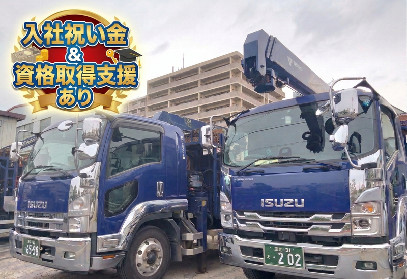 仕事内容 ◤ ̄ ̄ ̄ ̄ ̄ ̄ ̄ ̄ ̄ ̄ ̄ ̄ ̄ ̄ ̄ ̄ ̄ ✅毎日16時定時!残業ほぼなし★ ✅未経験でも月給30万円〜スタート! ✅クレーン仕様で身体の負担もなし♪ ✅都内中心の地場配送!長距離なし★ ✅注目◎入社祝い金3万円支給します! _________________◢ ⭐3tユニック・ドライバー募集⭐ 建設現場で使う資材(主に敷鉄板、H型鋼、山留材など)を運ぶ仕事!仕事は一度覚えてしまえば繰り返しなのでスグに覚えられますよ! 長距離配送ナシ!クレーン使用で力仕事も少なめです◎ *千葉(佐倉・市原・船橋など)から首都圏への地場配送がメイン *都内への配送は、1日2~3回 *積み降ろしはクレーンを使用! *2〜3台のチームで動くので、わからないことはスグに聞ける環境! ╲ 1日の流れ ╱ 出社 ↓ 各自現場へ配達 ↓ 帰社し片付け ↓ 解散 ✋配達ルートは前日に発表。固定ルートではないのでいつも新鮮な気持ちで運転できます! ✋「しっかり稼ぐ」と「無理のない働き方」どちらも叶えることができるのが当社の特徴。長期で安定したいドライバーさんにピッタリの環境です! *☆*―――――――――――――― / 「仕事の後は自分の時間!」が叶う♪ \ ドライバー=拘束時間が長い、というイメージを覆します。16時定時で残業もほぼないため、仕事終わりにジムに行ったり、友人と飲みに行ったり、ゲームを楽しんだりと私生活が超充実! 「趣味を大切にしながら、しっかり稼ぎたい」という20代・30代にピッタリの環境です。 / 未経験から「プロ」へ! 一生モノの資格を会社負担で◎ \ 「免許はあるけど実務経験がない…」という方も大歓迎。 まずは先輩の横乗りからスタートし、仕事の流れをゆっくり覚えていきましょう。 小型移動式クレーンや玉掛などの資格も、会社の支援制度で取得可能!スキルが身につけば、将来にわたって安定して稼ぎ続けることができます。 / チーム制だから 一人ぼっちにさせません! \ 現場へは2〜3台のチームで向かいます。 一人で抱え込む必要はなく、困った時はベテランの先輩がフォローしてくれるので安心です。 20代〜40代の活気あるメンバーが活躍中!体調不良や家族の行事など、お互い様の精神で助け合える職場です◎