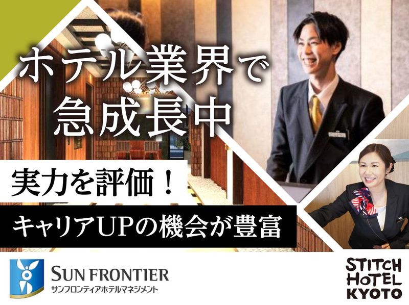 仕事内容 ========== 6月30日開業! <夜勤>ホテルフロント募集 ========== 新しくオープンしました 【STITCH HOTEL Kyoto】 で一緒に働いてくれる方、大募集! ―――――――――― STITCH HOTEL Kyoto ―――――――――― 阪急京都線「京都河原町駅」から徒歩1分、 京阪本線「祇園四条駅」から徒歩2分という抜群の立地にあるブティックホテルです。 京都の中心に位置し、主要な観光地や交通機関への アクセスにも優れているため、旅の拠点として最適です。 全16室のスイートルームは、 50㎡以上の広々とした空間にキッチンや洗濯乾燥機を完備し、 快適な滞在をサポート。 京都の歴史が息づく風情と、 西洋の洗練された心地よさが融合した空間で、 上質なひとときをお楽しみいただけます。 もともとシングルルーム主体のビジネスホテルだった建物を活かしながら、 大胆なリノベーションを施し、 「STITCH HOTEL Kyoto」として生まれ変わりました。 新築ではなく既存資源を有効活用することで、 建物の価値を再発見し、 新たな魅力を生み出すことを目指したプロジェクトです。 当社グループの「建物を大切にしながら、新しい価値を創造する」という想いが詰まったホテルです。 ✅週2、3日~OK ✅語学力UPも! 「将来は接客業やサービス業で働きたい!」 そんな夢をお持ちの方も大歓迎!! ホスピタリティやマナーの基礎から学べる環境です◎ ――――― 仕事内容 ――――― ・チェックイン ・チェックアウト、 ・お荷物のお預かり ・観光案内 ・宿泊予約 ・オペレーター などフロント業務全般作業をお願いします。 ※ ワンオペが基本です ※ 英語力が必須です ――――――― 私たちの目標 ――――――― 「利他」 これは私達が掲げる目標の一つです。 「常にお客様の為に協力し合い、 純粋な気持ちで感動を提供することで、 本当の喜びを得られる」 今まで多くのお客様から感謝の声や ご好評を頂けているのは、 私たちがこの目標にグループ一丸となって 挑み続けているからです。 お客様に誠実なおもてなしができる方 と一緒に「心温かいホテル」を 目指していきたいと思っています。 私達の想いに少しでも共感して頂ける方は、 ぜひお気軽にご応募ください! まずはお会いしてお話を聞けることを 心より楽しみにしております♪