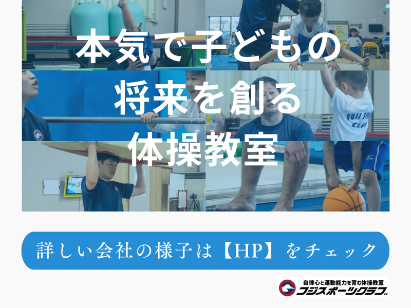仕事内容 \体操をしていた頃が 一番楽しかったあなたへ/ 未経験から“先生”という選択肢。 正社員として安定しながら、 子どもの20年後を本気で考える仕事。 「学生時代は体操をしていたけど、今は別の仕事」 「体育館の空気やマットの匂いを、 ふと思い出すことがある」 「自分の体操レベルで教えられるのかな?」 「子どもに関わる仕事がしたい」 その体操経験、 ここで“先生”という形で活かせます。 ─────────────────── ……⭐この仕事のポイント⭐…… 教育×スポーツで活躍できるお仕事♪ ─────────────────── ✅賞与最大年4回支給 ✅年収800万円の実績あり ✅週2日は実働5時間勤務 ✅残業月12時間以内 ✅1日3~4コマ/少人数制で指導 ✅講師自身がカリキュラムを工夫できる ✅アシスタントから段階的に習得OK ✅各種ビジネス・体操技能研修あり ✅20日間のトレーニング研修あり ✅独立支援制度あり ────────────────── ………⭐お仕事内容について⭐……… ────────────────── 2歳〜12歳の子どもたちに マット運動・鉄棒・跳び箱などを通じ、 「体を動かす楽しさ」を伝えるお仕事です。 …【仕事内容は大きく分けて2つ】… ①1コマ55分の体操指導 ────────────────── ▨1日3~4コマを担当 ▨子ども5~6名/指導者1人あたり ▶運動が苦手な子にも寄り添って指導 ②カリキュラム考案・改善 ────────────────── ▨自分のアイデアで構成可能 ▨「やってみたい」を形にできる ▶子どもの笑顔に直結するやりがいあり! ✅未経験者はアシスタントからスタート。 ✅先輩がしっかりサポートするから安心! ✅段階的に指導力を習得できます◎ ❖入社後20日間の充実研修あり❖ ―・―・―・―・―・―・―・―・―・―・―・― 新人研修・補助研修・マネジメント研修など ビジネスマナーや指導ノウハウまで 幅広く学べる環境が整ってます! 未経験でも安心してスタート可能♪ ❖挑戦したい気持ちがある方へ❖ ―・―・―・―・―・―・―・―・―・―・―・― 子どもと真剣に向き合い、 「なぜその指導をするのか」を考えながら 学び続けられる方を歓迎します。 簡単な道ではありませんが、 その先には大きな成長と 確かなやりがいがあります。 努力や成果はしっかり評価、還元。 年収800万円超を 実現しているスタッフもいます。 ┏━━━━━━━━━━━━━━━━┓ ❖フジスポーツクラブってこんな会社 ┗━━━━━━━━━━━━━━━━┛ 2歳〜12歳を対象とした体操教室を運営。 技術を教えるだけでなく、 人間形成にも関わる教育型スポーツ企業。 スタッフ研修に注力し、 体操+ビジネス研修で人材育成に本気! ◤新教室、続々OPEN中!◢ ―・―・―・―・―・―・―・―・―・―・―・― フジスポーツクラブは現在、 新しい教室を続々OPEN中。 教室拡大に伴い、 新しいポジションや キャリアチャンスも増えています。 働くスタッフや実際の様子を 動画でチェック! ぜひHPもご覧ください。 https://fujisportsclub.com/