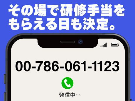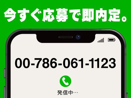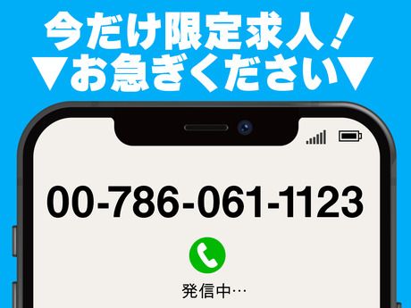 選考プロセス 電話応募で、その場で研修日時のご予約ができます。 あっという間にお仕事決定♪ ▼ご応募はこちらから▼ 【00-786-061-1123】 【問合せ先について】 問合せ先:0078-6061-1123 <TEL受付時間>平日9:00~17:00、それ以外の時間帯はWEBにて24時間受付中! 応募方法 ▼ご応募はこちらから▼ 【00-786-061-1123】 面接なし!来社なし!電話1本で完結! 簡単な確認のみで即内定! 自宅にいながら内定GET&履歴書不要!