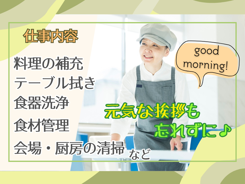 仕事内容 ―**――**求人POINT!**――**― ✅未経験OK!パートデビューも歓迎! ✅週3日~OK!平日のみOK ✅主婦さん中心に活躍中! ✅駅チカ徒歩4分!車通勤もOK◎ ―**――**――**――**――**― 朝5時すぎ。 目は覚めているけれど、家族はまだ寝ている。 洗濯を回すには早すぎるし、 テレビを見ていても、なんだか時間を持て余す――。 「どうせ起きてるなら、少しだけ働こうかな」 そんな気持ちで始めたスタッフが、 実はこの職場にはたくさんいます。 お任せするのは、 ホテルの朝食会場の準備と片付け。 朝の4時間だけ、気持ちよく体を動かすお仕事です。 【仕事内容】 ✔ おかずやパンを大皿に盛り付ける ✔ 料理や備品の補充 ✔ 使い終わった食器を下げて洗浄機へ ✔ 会場の簡単な清掃や整え作業 ✔ 食材の管理(発注や納品確認) など 難しい調理はありません。 「家でやっていることに近い」と 感じる方がほとんどです。 お客様には 「おはようございます」と挨拶できれば十分です。 ⏩5:30~9:30だから、ちょうどいい  ̄ ̄ ̄ ̄ ̄ ̄ ̄ ̄ ̄ ̄ ̄ ̄ ̄ ̄ ̄ ̄ ̄ ̄ ̄ 朝のうちに仕事が終わるので、 ・そのまま買い物へ ・病院や役所にも行きやすい ・午後は家事や自分の時間に 「1日が長く使えるようになった」 「気持ちよく1日を始められる」 そんな声がよく聞かれます♪ ⏩働く日数に合わせて無理なく続けられる  ̄ ̄ ̄ ̄ ̄ ̄ ̄ ̄ ̄ ̄ ̄ ̄ ̄ ̄ ̄ ̄ ̄ ̄ 週3日からOKの柔軟シフトで、 家庭との両立もバッチリ。 週4日・5日働ける方は社会保険加入も可能です。 生活に合わせてムリなく働けます◎ 平日のみの勤務もOK! ご家庭の予定に合わせて調整できます。 「家計の足しに少しだけ」 「自分のお小遣いに」 「体を動かして、気分転換に」 始める理由は、みなさんそれぞれです。 「朝の時間を、少しだけ自分のために使いたい」 「久しぶりに、人と関わる仕事がしたい」 そんな気持ちがあれば、十分です。 まずは一度、お気軽にご応募ください◎ 【応募方法】 ✨直接採用担当とお話ししたい方 →電話での応募大歓迎! 0463-25-1045 までお気軽にお問い合わせください! ✨【応募】ボタンから応募の方 →エントリー後、担当者からご連絡差し上げます。 ご連絡が取れる 電話番号またはメールアドレスの 記載をお願いします。