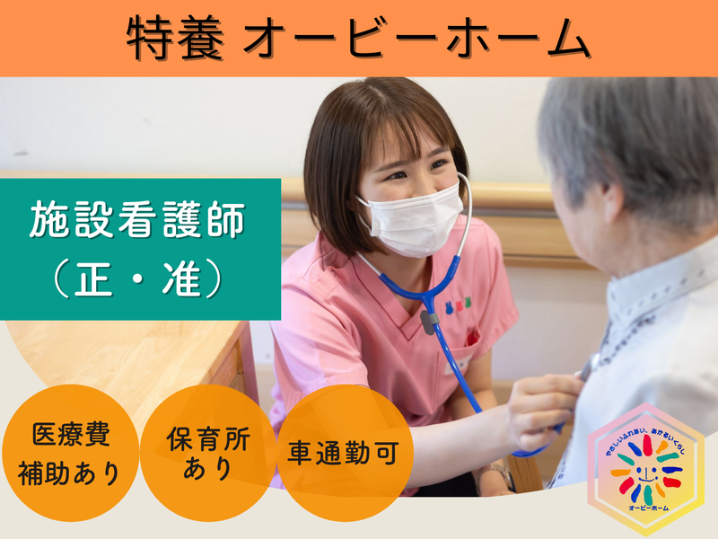 仕事内容 ◆高齢者施設の看護師(正看護師)正社員◆ *社会福祉法人丸(オービーホーム)が募集する正式な求人です* 施設にご入居されている方の看護や健康管理業務をお願いします。 ・バイタルチェック ・服薬管理 ・胃ろう管理 ・処置全般 ・受診、救急搬送時の付き添い など 日勤帯は看護師3~4名体制で、嘱託医が法人協力医院の医師であるため、相談もしやすい環境です。 看護業務の合間には入居者さんに楽しんでもらえるレクリエーショ ンやゲームを考えたり一緒にすることもあります。 オンコール担当は月に6~7回程度ですが、実際に電話がかかってくる機会はそう多くはありません。 同敷地内に保育施設があるため、子育て世代の方も安心して働いて頂けます♪ ☆利用料は半額法人が負担!! ・従事すべき業務の変更の範囲あり:法人の定める業務 ・就業の場所の変更の範囲あり:転勤範囲 法人内(神戸市垂水区)