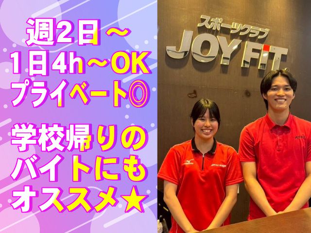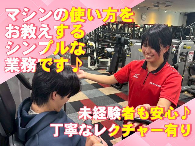 仕事内容 <パート・アルバイト/スポーツクラブの受付・案内> ////ここがポイント//// ・週2日~、1日4H~OK ・未経験者が活躍中 ・女性活躍中 ・大学生、フリーター活躍中 ・学校帰りのアルバイトOK! ・ネイルOK・髪色・髪型自由(応相談) ・WワークOK(他で正社員として働かれている方は不可) ・駅チカ(徒歩7分) ・丁寧な研修&フォロー体制バツグン ・主婦パートも活躍中 ・扶養内勤務もOK ・時間・曜日の相談OK! ・ジムなど施設利用料無料!出勤じゃない日もOK 現在10代・20代・30代を中心に、40代・50代の方も活躍中です。スポーツジムやスポーツクラブ、フィットネスジムで働きたい方!パート・アルバイトとしてジョイフィットで働きませんか? 【募集職種】 パート・アルバイト/ジムスタッフ <お仕事内容> ・入会、退会、見学者の受付・ご案内 ・ジムトレーニングマシンの指導 (マシンの使用方法をお教えするシンプルな業務です) ・ジム内およびロッカールーム、浴室の清掃 <こんなきっかけでOK> ・スポーツクラブ、フィットネスクラブで働きたい! ・ヨガやピラティスなど体を動かすのが好き! ・学校が終わった後にジムで働きたい! ////ジム施設利用無料//// 施設の全てが無料で利用できます。ジムエリアでのマシントレーニングはもちろん、スパ施設のお風呂まで利用可能! まずはお気軽にご応募お待ちしております!