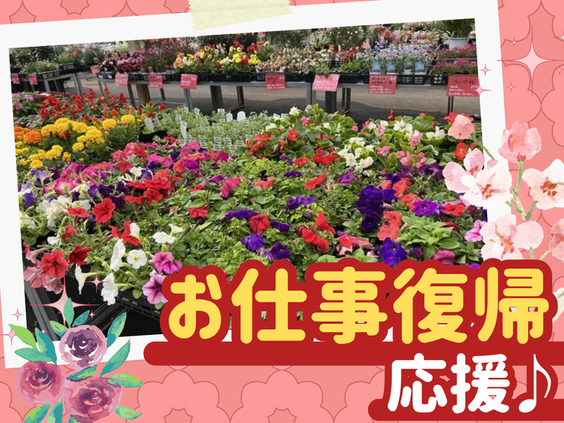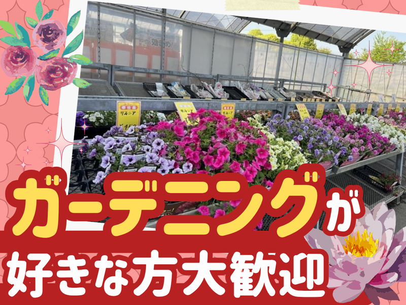 求めている人材 / ガーデニングが好きな方歓迎! \ *未経験OK&学歴不問! *長期で働ける方大歓迎! *育児が落ち着いた方の 職場復帰も応援♪ *40〜60代のパートさん活躍中! ―・・―・・―こんな方も大歓迎!―・・―・・― ・ブランクのある方も歓迎 ・ハローワークでお仕事お探し中の方も歓迎 ・学歴不問! ・フリーター歓迎 ・家事と両立しながら働きたい方 ・土曜日に働ける方(時給100円UP!) ・ガーデニングや農産物に興味のある方 ・接客経験のある方 ―・・―・・―・・―・・―・・―・・―・・―・・―・・―