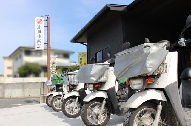 南日本新聞の朝刊配達スタッフ