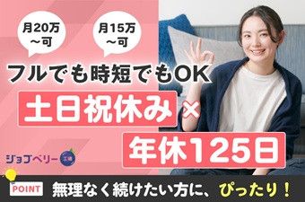 仕事内容 時短orフルタイム選べる!年間休日125日★日勤専属・土日祝休み・残業少なめで家庭とも両立◎安心の食品工場での軽作業ワーク♪ <仕事内容> 食品用パッケージを製造している工場でのお仕事となります。 ●製造現場での作業 ・パッケージの印字チャック ・製品のサイズが規定にあっているかの目視での測定 ・完成品の数量チェック ※現場は空調完備、マスク着用厳守エリアとなります。 ●工場内事務所での作業 ・完成品の数量入力 ・簡単な書類作成 どの作業も資格や経験がなくてもできる簡単作業です★ 座り作業です。 個人作業・グループ作業どちらもございます。 《職場環境》 冷暖房完備です。 ロッカー有り|休憩室完備 アピールポイント <仕事内容> 食品用パッケージを製造している工場でのお仕事となります。 ●製造現場での作業 ・パッケージの印字チャック ・製品のサイズが規定にあっているかの目視での測定 ・完成品の数量チェック ※現場は空調完備、マスク着用厳守エリアとなります。 ●工場内事務所での作業 ・完成品の数量入力 ・簡単な書類作成 どの作業も資格や経験がなくてもできる簡単作業です★ 座り作業です。 個人作業・グループ作業どちらもございます。 《職場環境》 冷暖房完備です。 ロッカー有り|休憩室完備 \充実した福利厚生/ ◎社会保険・雇用保険完備 ◎有給休暇有(6ヶ月経過後、10日付与)※規定あり ◎残業手当 ◎交通費支給(規定内) ◎確定拠出年金制度 ◎週払い制度(週3回対応) ◎お友達推薦制度あり(規定有り) ※1名につき3万円~10万円臨時給与として支給 ◎車(マイカー)・バイク通勤OK(駐車場無料!) ◎制服貸与 ◎冷暖房完備 ◎食事スペース有り ◎食事持参可 ◎福利厚生プログラム (宿泊、グルメ、ショッピングなど大幅割引が受けられる10万アイテムのメニューがあります。)