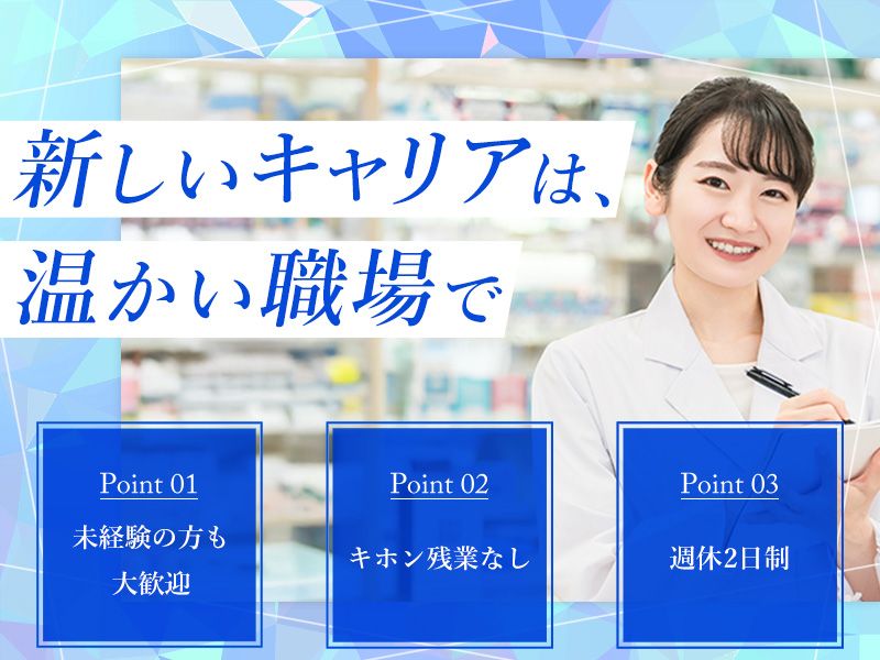 仕事内容 \ まずは求人のPOINTをチェック/ ✿キホン残業なし、定時でサクッと帰宅♪ ✿昇給や年2回の賞与あり ✿週休2日制で自分の時間も楽しめる◎ ★完全未経験の方も大歓迎の求人! 一緒に地域の健康を支えませんか? ⇩⇩⇩ < お任せしたい業務内容 > ・薬品や雑貨の販売 ・処方箋の受付や入力 ・調剤補助や医薬品の在庫管理 など 患者さんとコミュニケーションを取ることが多く、 地域の健康を支えている誇りを胸に働くことが できます♪ ▶ 未経験でも大丈夫…??  ̄ ̄V ̄ ̄ ̄ ̄ ̄ ̄ ̄ ̄ ̄ ̄ もちろんです! 入社後は丁寧な研修でイチから丁寧に 業務を教えていきます。少しでも分から ないことがあればすぐに質問OK! ★経験を積んで登録販売者の資格取得を 目指すこともできます◎