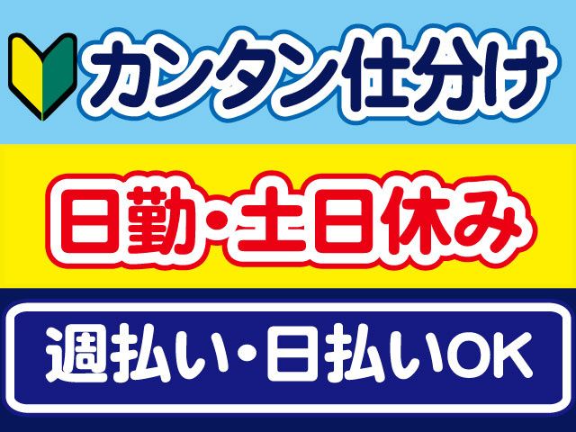 仕事内容 大里郡寄居町にある優良企業様でのお仕事 シニアの方も活躍中の検査/梱包スタッフ大募集! 初心者の方も安心して始められるお仕事です /////検品スタッフのポイント///////////////////////// 〇時給1,400円 〇年齢不問 〇未経験OK 〇単純作業×もくもく作業 〇車通勤OK 〇日勤のみ 〇土日休み 〇日払いOK 〇前払いOK 〇週払いOK 〇シニアの方も活躍中 〇履歴書不要 〇週払いOK(規定内) 〇20代30代40代50代60代幅広くできるお仕事です 〇元主婦パート・中高年パート活躍中 〇職場見学OK(30分~1時間程度) ////////////////////////////////////////////////////////// 【箱詰めスタッフの仕事内容】 嵐山町にある新しい倉庫でのカンタン軽作業です 〈具体的には〉 自動車で使われる部品を ・箱詰め作業 ・仕分け作業 ・シール貼り ・移動作業 をお任せします。 単純作業なので、安心して作業できます。 扱う製品はハーネスやシートベルトなどの自動車部品です。 〇入社後には研修がありますのでご安心ください。 工場や倉庫内スタッフの特別な経験は必要ありません! 未経験スタートの元主婦パート・中高年パートさんも多数活躍中! 【箱詰めスタッフの勤務について】 〇日勤のみ(8:30~17:30) 〇土日休み(年間休日120日) 〇急な発熱・体調不良・冠婚葬祭など、突発的なお休みに柔軟に対応しております。 【こんな経験活かせます!】 特別な経験・資格は必要ありませんのでご安心ください。 下記経験者は前職活かせます。 〇ピッキングパート・アルバイト 〇軽作業パート・アルバイト 〇仕分けパート・アルバイト 〇倉庫内派遣 〇主婦パート(職種不問) 〇中高年パート 前職不問で採用しております。 「急な出費に対応」 週払い・日払い制度があります。 前払いご希望の方はご相談ください。 「WEBでも電話でも応募OK」 気になる事があればまずはお電話ください。 株式会社キャリアコンパス TEL.048-598-6672 (採用担当) ↓そのお仕事情報はコチラ 採用サイト https://entori.jp/careercompass-hirameki7 ホームページ https://careercompass.hirameki7.site/