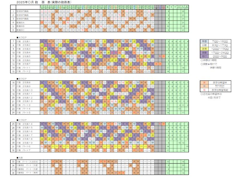 夜勤なし・残業ほぼなし・月9日休みのうち希望休4日OK
