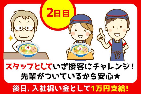 仕事内容 //////////// ここがポイント!! ////////////// ・学業との両立可能!シフトご相談ください! ・飲食バイトが初めての方、バイトデビューの方歓迎 ・時給1,070円~(交通費規定支給)土日祝時給50円UP! ・美味しいまかない補助あり! ////////////////////////////////////////// <「8番らーめん」とは> 昭和42年(1967年) に加賀市の8号線沿いにオープン。 現在では石川県、富山県、福井県の北陸三県を中心に 、近隣の府県から国外まで店舗数を伸ばしているラーメンチェーンです。 <具体的なお仕事> タッチパネルを導入したため、オーダーは取りに行かなくてもOK! 入社後まずは先輩スタッフが後ろについてメニューを覚えることからスタート! 徐々に慣れていったら以下のお仕事をお願いします! 【接客】お客様のご案内やオーダーを取る業務 【ホール業務】料理の提供やテーブルの片付け業務 【キッチン業務】餃子を焼いたり・唐揚げを揚げたり・野菜を炒めたり、 できたメニューの盛り付け。 やることが決まっているので調理自体は簡単です◎ 1カ月以内で覚えられるような作業がほとんどです。 飲食バイトの経験がない方でも安心して働くことができます。 \一緒に働く仲間(^^)/ 高校生も多く活躍中! 部活動を終えた2年生の学生さんも多数いますよ♪ テスト週間や部活動でのお休みにも柔軟に対応しているので、ご安心くださいね。 お昼の時間は主婦さんやフリーターの方がメインで活躍中です! 在籍人数:福久店6名・津幡店18名・宇ノ気店18名