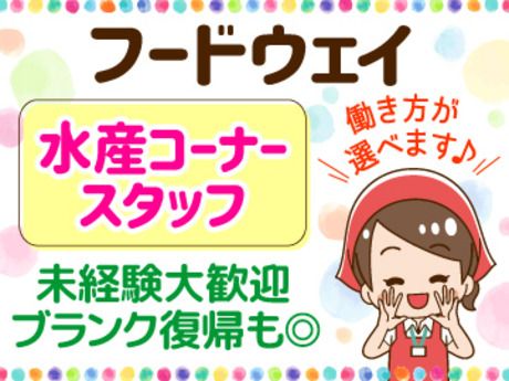 職場環境 【従業員構成】 10代・20代・30代・40代・50代・60代活躍中! 学生・主婦・中高年・フリーターなど幅広い年代のスタッフが未経験から活躍中! ▼みんなに聞いたフードウェイの魅力POINTをご紹介します♪ (1)時給が高めで稼ぎやすい! (2)シフトの融通がきく♪ (3)日数・曜日で時給がUPする! (4)社割で家計が大助かり♪ (5)研修が丁寧で未経験でも安心◎ 【職場の雰囲気】 にぎやかな職場 協調性がある 業務外交流少ない 立ち仕事 アットホーム お客様との対話は少ない 初心者活躍中 力仕事が少ない 自分の都合に合わせやすい 知識、経験不要