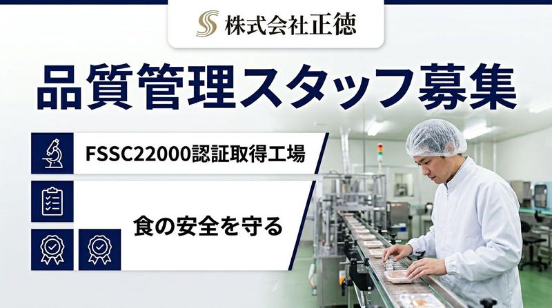 仕事内容 \年間休日が110日以上!残業も月17時間程度/ ■工場内の衛生管理業務全般 ■工場内の菌数管理、洗浄方法の見直し ■商品パッケージの裏面表示作成 ■ISO・FSSC監査対応 製造作業において、品質管理業務をお任せいたします。 ▼簡単な募集内容▼ 【雇用形態】正社員 【給与】年収:350万円~500万円 【勤務時間】8:30~17:30 【勤務地】兵庫県神崎郡福崎町西治1101-11 【募集要件】品質管理に関する実務経験 または知識を習得をされている方 ★この求人のアピールポイント ■2023年に大規模な新工場が設立!綺麗な最新工場で勤務可能 ■働き方改革や賃金改定も積極的に行っています♪ ■前年度から固定給が5%アップ ■業界トップクラスの利益率♪有名な大豆製品製造企業 ■工場内はすべてカメラで確認◎リモート管理可能 ================= 【どんな会社?】 当社は創業1963年に大豆卸売"正徳"として事業を開始し、1979年に大豆製品の販売卸売部門としてケーエスフーズ㈱を設立いたしました。以降、油あげや厚あげ、豆腐など大豆加工品の製造を多く手掛けて参りました。 当社大豆製品の中でも、からだにやさしい「べに花油」を100%使用した”べに花シリーズ”はたくさんの方から支持をいただいており、現在では油あげ全国No.1販売実績を誇る商品です。 当社製品の業界は、売上げが社会的なトレンドに作用されない、コロナウイルスでも売上げに影響が出るものではなく、安定的に業績を伸ばしております。これまでは長年、工場の生産数のキャパシティから西日本を中心に展開しておりましたが、2013年に福崎工場が出来て生産数が上がったことにより、西日本だけでなく、関東方面にも販売エリアを拡張することが可能となりました。 そして、それを皮切りに今後の需要拡大を見越し、本年2022年には40億円の工費を投じて、第三工場の新設を予定しております。 【お仕事内容】 豆腐・厚揚げといった当社製品の製造作業において、品質管理業務をお任せいたします。 まずは現場作業で半年から1年程度経験を積み、適性を判断し、管理職を目指していただきたいと考えております。 具体的には・・・ ■工場内の衛生管理業務全般 ■工場内の菌数管理、洗浄方法の見直し ■商品パッケージの裏面表示作成 ■ISO・FSSC監査対応 などなど 機械に合わせて生産をしておりますので、一定のクオリティでの生産体制を構築しております。 ですので、品質管理のポジションは基本的には現行の衛生管理業務全般についての改善を検討したり、工場内の菌数管理、洗浄方法の見直し等、お客様が安全に当社商品を消費いただく為の更なる改善活動が重要な業務となります。 ★入社後の流れ まずは、食品工場での品質管理としてのポジションを担いつつ、実際の製造現場で製造実務経験も行なっていただくことで、当社製品の製造過程なども理解いただきます。 【会社の魅力】 ■2023年に大規模な新工場が設立!綺麗な最新工場で勤務可能 ■働き方改革や賃金改定も積極的に行っています♪ ■前年度から固定給が5%アップ ■業界トップクラスの利益率♪有名な大豆製品製造企業 ■工場内はすべてカメラで確認◎リモート管理可能 当社は年間休日が110日以上あり、残業も月17時間程度のため、プライベートも充実させながら勤務することが可能です。 また、正社員90%以上の工場ですのでチームワークがあり管理しやすい環境です。周りにサポート出来る社員も多く、社員同士の関係性が非常に良好な工場となっております。若手が多い職場で活気があり、経営者層との距離が近く、一人ひとりの長所を把握した上で、適材適所の配置を行っています。 業務内容などに関しては、面接の中でしっかりとご説明させていただきますので、当社でのお仕事にご興味を持っていただいた方のご応募をお待ちしています。
