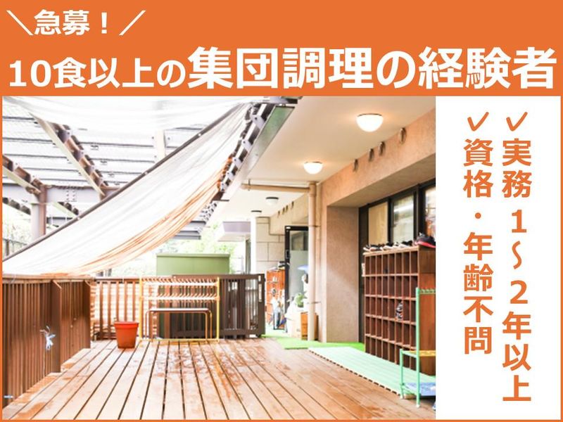 求めている人材 \求む!!調理実務1~2年以上の方!/ 学歴・年齢・資格不問!ブランクOKです! ***調理師免許をお持ちの方尚可*** 【必須】 ※調理業務の経験者(実務1~2年以上) >>グループホームなどの介護施設もOK! >>10食以上の集団調理経験あればOK! 衛生面などの基本的な部分がわかっていれば 大丈夫。実務ブランクある方もOKです! 【こんな方が活躍できます】 *周りを見て「次何をしよう?」と動ける *忙しそうな人がいたら自然とフォローに 入れる *前向きに「やってみよう!」と行動できる *スムーズに進めるために、積極的に コミュニケーションがとれる *子ども達のために調理経験を活かしたい 下記の経験も活かせます*経験者歓迎  ̄ ̄ ̄ ̄ ̄ ̄ ̄ ̄ ̄ ̄ ̄ ̄ ̄ ̄ ̄ ̄ ̄ 調理補助・調理員(調理スタッフ) 社員食堂・学校給食・幼稚園・保育園 特別養護老人ホーム・住宅型有料老人ホーム 介護老人保健施設・介護付き有料老人ホーム 病院・グループホーム・デイサービス など ※上記経験の雇用形態は問いません※ (正社員・アルバイト・パート・ 契約社員・派遣社員・委託社員など) 〇丁寧に指導します【学歴不問・資格不問】 〇まだまだ活躍【シニア応援・年齢不問】 〇転勤なしで長期活躍【U・Iターン歓迎】 〇久しぶりのお仕事復帰【ブランク歓迎】 〇副業・WワークOK【フリーター歓迎】 〇扶養内勤務OK【主婦・主夫歓迎】