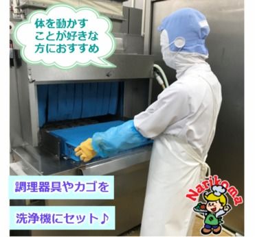 仕事内容 \食品工場でのケースやワゴン洗浄スタッフ/ キレイな食品工場内の大型洗浄機で 「使用済のカゴ」等の洗浄作業をお願いします。 (プラスチックのケースや、ステンレス製のワゴン類) ※立ち作業/連続的に軽重量の取り扱いがあります 具体的には・・・ ・工場内で使用した容器/カゴ類の洗浄(内容器) ・出荷用のカゴ洗浄(外容器) ・10:00~19:00シフト対応の方は基本的には ステンレス製ワゴン洗浄のみ <正社員登用制度あり> ・40~50代からも正社員へチャレンジ可能! ・ゆくゆくはキャリアアップをお考えの方! 【直近1年の実績】 6名(20代2名/30代1名/40代1名/50代2名) ※登用枠は職種、組織戦略による <入社お祝金制度あり> 3ヶ月勤務いただいた感謝の気持ちを込め、 入社3ヵ月経過後、入社お祝い金として 『1万円』が支給される制度です。 ※支給時期は社内規程による。 <こんな経験を持った方が活躍中> 給食サービスをはじめ、さまざまな職種の 経験者が集まっています。 社員食堂や職員食堂での勤務経験がある方や、 学校給食や施設内厨房で働いていた方々も多数在籍しています。 また、物流倉庫内での軽作業や 工場内での軽作業の経験者、 物品管理や工場作業に携わっていたスタッフもいます。