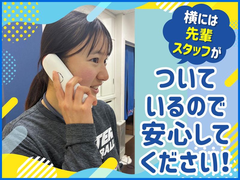 仕事内容 ―――――――――――――――――― ⭐初めてアルバイトの方も大歓迎! ⭐マニュアル完備!未経験も安心 ⭐スタッフ割引&無料で施設利用あり! フィットネスジムも利用OK☆彡 ―――――――――――――――――― 【具体的に...】 ・お客様対応 ・予約管理 ・電話対応 ・更衣室や館内の清掃 ・入会退会手続き などの受付業務をお任せします! 【まずは...】 入社後は、「明るく挨拶!」できればOK! 初めてのバイトで心配な方も安心してください◎ 2~3名体制で フロント業務を行っています。 マニュアル完備で覚えやすい! わからないことは、 すぐ先輩に質問できるので安心◎ 【全員が未経験スタート!】 PCを使ったデータ入力の仕方や 電話対応の仕方など研修で 丁寧にお教えします! まずは研修で業務の流れを覚えながら、 館内の簡単な清掃から始めていきます。 3カ月ほどあれば一人立ち可能です◎ ================ 【岡山校について】 年に1回、お客様感謝祭が開催されます! スクール生はもちろん、 ご家族で参加できます◎ 美味しいごはんのキッチンカーや 子どもが大好きな縁日なども楽しめちゃう♪ スポーツ好きを増やすきっかけに★
