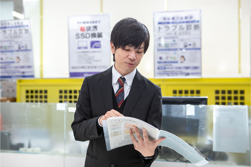 パソコンや周辺機器の接客を中心に行いながら技術や知識が身につきます