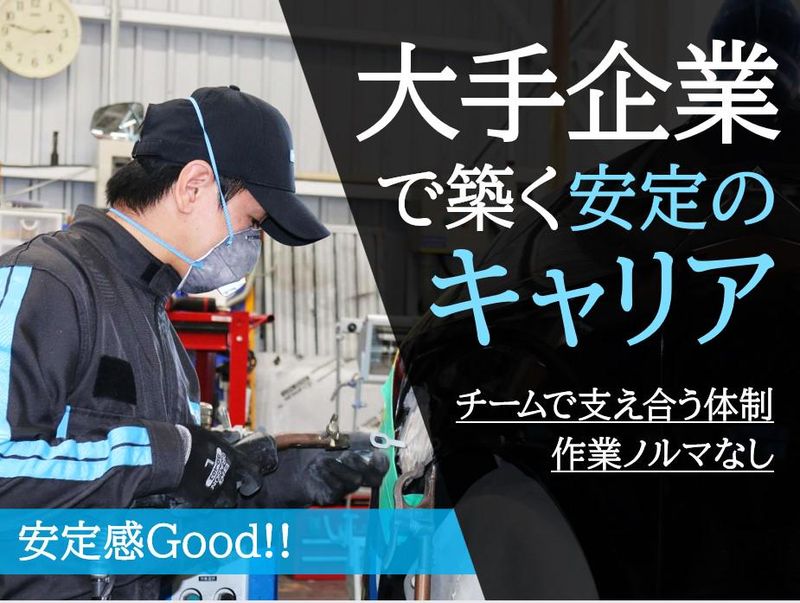仕事内容 □■この求人のPOINT■□ 伊藤忠グループ/2024年5月設立 ◎月給に加え毎月最大16万円のスキル給 *入社後すぐにスキルチェックを実施し、 技術を正当に評価、給与へ反映します。 ◎最新設備で作業効率と安全性を両立 (1人1レーン制/1拠点でフレーム 修正から仕上げまで完結) ◎あらゆるメーカー・ 車種の修復を経験可能 幅広いスキルを習得できます。 ◎学歴関係なく、意欲と実力で リーダーや工場長へ! ◎現場主導のチーム制を導入 若手・中堅問わず、 互いに支え合う文化です。 ◎原則定時退社で残業少なめ 土日は基本休み。 無理なく働ける勤務体制です。 ◎作業ノルマなし。目の前の仕事に 集中できる職場です。 □■お任せするお仕事は■□ 事故や経年によって損傷した車両の 修復を行います。 「お客様の大切な車を、 自分の手でよみがえらせる」 それがこの仕事のやりがいです。 <具体的には> フレーム修正、パネル交換、パテ処理、 塗装仕上げまで修復に関わる工程を、 スキルに応じて段階的に 習得していただきます。 自社基準に沿った技術体系があるため、 品質も安定しやすく、経験が浅い方でも 着実にステップアップできます。 □■充実の工場設備■□ 毎日の清掃と整備を徹底し、 作業しやすく安全な環境を整えています。 「職人任せ」ではなく、 設備・動線・空調・照明まで こだわった職場です。 01. トラバーサーレール 02. キュービックタワー・リフト 03. 床下集塵機システム 04. プッシュプル型塗装ブース 05. 水性塗装 06. 天井吊下式アルティメットヒーター □■充実した研修・教育体制■□ 未経験者でも成長できるように 段階別の研修制度を整備。 現場任せではなく、学びながら 仕事に取り組めるよう支援しています。 <研修の一例> ◎入社時研修 (先輩とマンツーマンで学ぶ) ◎新機構研修 (最新自動車の構造・装置を学ぶ) ◎鈑金修正システム研修 ◎塗装・調色研修 ◎コンプライアンス研修 など □■目指すは日本一■□ 私たちが目指しているのは、 「日本一の鈑金工場」です。 品質はもちろん、お客様が 安心して任せられることを重視。 その一貫として、 国交省の鈑金ガイドラインに基づき、 作業前後の写真撮影などの情報開示を 業界でいち早く開始するなど、 透明性の高い工場運営を行っています。 あなたも一緒に、日本一の工場を 築いていきませんか? ==== 長い目で勤務できる体制 ==== □■評価・報酬について■□ 日々の仕事のがんばりを反映する 評価制度のもと、年齢・社歴に関係なく 平等にチャンスがあります。 (定期的に評価。基本給・賞与へ反映) また、個人の技術と社内資格を 反映させた「スキル給制度」を 導入しています。 ▼ スキル給/月給に加えて最大16万円 ※技術力に応じて支給 <評価例> 【月額スキル給10万円】 ◎パテを使用した軽鈑金作業ができる ◎ボルト止めパネルなどの部品交換ができる ◎下地作業ができる ◎耐スリクリアを含む磨きができる etc. 【月額スキル給13万円】 ◎切換パネル交換ができる ◎骨格修正ができる ◎調色作業ができる ◎内板・外板塗装ができる etc. 【月額スキル給16万円】 ◎大破修理ができる ◎塗装の全工程ができる ◎高品質な作業と人材育成ができる ◎工場長の補佐業務ができる etc. ※上記スキルに加え、個人・店舗目標などの 達成率で総合的に判断いたします。 □■キャリアパス■□ 技術/管理/マネジメントと 多方面のキャリア形成を支援します。 ▼ ◎鈑金塗装の技術を極める ◎希望に応じて管理職を目指す (フロント/工場長/ブロック長) ==== 私たちはこんな会社です ==== □■WECARSについて■□ 私たちは、伊藤忠グループ参画の下、 2024年5月に発足した 中古車販売・買取企業。 現在、 全国で約250店舗を展開しています。 □■WECARSが大切にしていること■□ 1. お客様ファースト (お客様の満足度・納得感の向上) 2. お客様ファーストを実現するための 組織・社員としての成長 3. 信頼される中古車市場の創造をリード ★人事制度改革、 人材育成への取組強化、 コンプライアンス体制構築等の 改革を推進しています。