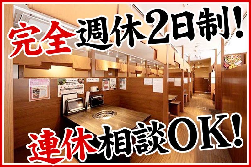 仕事内容 【★このお仕事のPOINT★】 ✅完全週休2日&シフト制 労働環境◎ ⇒飲食業界なのに休みも充実♪平日残業無し! ✅頑張り次第で随時昇給有◎ ⇒頑張りはしっかり評価します! ✅美味しいまかない有♪ ⇒勤務後はまかないを食べてリフレッシュ◎ ✅業界未経験◎ ⇒あなたの挑戦を応援します◎ ✅経験を活かして勤務◎ ⇒居酒屋やカフェなど焼肉以外の飲食の方も大歓迎です! 経験者は、月給28万円~ 店長候補は、月給30万円~ ∞-・・・-∞-・・・-∞-・・・-∞-・・・-∞-・・・-∞- 【仕事内容】 焼肉屋でのキッチン業務をお任せします! ★全100席!リピート率100%の人気店★ 具体的には… ▶キッチン業務 ・お肉のカット ・盛り付け ・簡単な調理 ・キッチンの清掃 ・仕込 など ▶店舗運営・管理 ・シフト管理やスタッフの指導・育成 ・食材や消耗品の在庫管理、発注業務 ・店舗の売上管理、日々のレジ業務 ・クレーム対応、サービス改善提案 など 【入社後について】 まずは仕事の流れやメニューを覚えたりなど簡単な作業からスタートします。 慣れてきたら徐々にできることを増やしていきましょう。 ⇒お肉や料理の知識は入社後じっくり学べる環境です! ★居酒屋やカフェなど焼肉以外の飲食の方も大歓迎です! もちろん飲食未経験でもOK!「人とお話しすることが好き!」「接客が好き!」「調理が好き!」など応募理由はなんでもOKです! まずは、アルバイト・パートからスタートしゆくゆくは正社員もOKです!