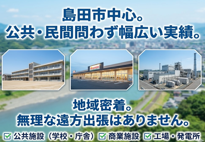 仕事内容 ╭━━━━✨ ここが全て! ✨━━━━╮ 施工管理の仕事は好きだ。 でも、働き方は変えたい。 そんなあなたに「年間休日130日」を。 ╰━━━━━━━━━━━━━━━━━╯ 静岡県中部エリア(島田市中心)にて、 建築施工管理業務をお任せします。 ⭐ 具体的な案件  ̄ ̄V ̄ ̄ ̄ ̄ ̄ ̄ ̄ ̄ ̄ ̄ ̄ ̄ ̄ ̄ ̄ ̄ ̄ 公共工事から民間施設まで幅広く担当します。 ✅ 公共施設(学校、庁舎など) ✅ 商業施設、店舗 ✅ 工場、発電所関連施設 ※地域密着のため、無理な遠方出張はありません。 ⭐ 業務内容  ̄ ̄V ̄ ̄ ̄ ̄ ̄ ̄ ̄ ̄ ̄ ̄ ̄ ̄ ̄ ̄ ̄ ̄ ̄ ✅ 現場の指揮・監督(安全・品質・工程管理) ✅ 協力会社との打ち合わせ ✅ 書類作成・写真管理 ✅ 周辺環境への配慮・対応 ......................................................... 「稼ぎたいけど、早く帰りたい」 その本音、当社なら叶えられます。 ✅ 驚異の「年間休日130日」 └ 完全週休2日制(土日祝休み)。 GW、夏季、年末年始もしっかり休めます。 家族旅行や趣味の時間も諦めなくてOK。 ✅ 残業月15時間以下 └ 1日あたり1時間未満。 現場が近く、移動時間が少ないため 18時には家で夕飯を食べられます。 ✅ 納得の収入水準 └ 月給30万円~40万円スタート。 家族手当や住宅手当も完備しており、 生活水準を落とさずに転職可能です。 ⭐ なぜ「ホワイト」なのか?  ̄ ̄V ̄ ̄ ̄ ̄ ̄ ̄ ̄ ̄ ̄ ̄ ̄ ̄ ̄ ̄ ̄ ̄ ̄ 創業1966年。50年以上の歴史の中で 築き上げた「信頼」があるからこそ、 無理な納期の案件を受注する必要がありません。 「社員が疲弊する仕事は取らない」 「利益はしっかり社員に還元する」 それがグロージオの流儀です。 定年まで現場で活躍したい。 そう思える環境を、私たちが用意します。 ───【当社について】─── 株式会社グロージオです。 土木・建築の二軸で安定経営を続けています。 「育児短時間勤務」や「奨学金返済支援」など、 ライフステージが変わっても働き続けられる 制度づくりに注力しています。 ■ 公式HP https://www.growgeo.co.jp/