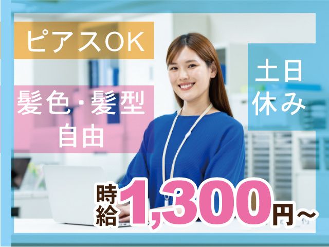 土日休み/SNS好きな方歓迎/髪型髪色自由/ピアスOK/時給1,300円~/週2日~・1日3h~OK