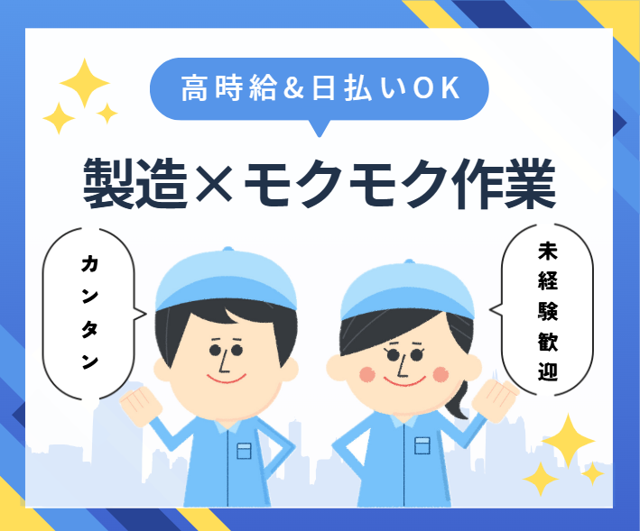 PR・職場情報 ■□■□■□■□■□■□■□■□ *オシゴトのおすすめポイント!* ■□■□■□■□■□■□■□■□ ▼工場ワークデビュー歓迎◎ 体を動かしたい方にピッタリのお仕事です。 ▼40代までの幅広い世代の男性スタッフが活躍中! 未経験からでも安心してお仕事を始められます。 ▼土日祝休み&フルタイム勤務 安定勤務で腰を据えて長く働ける環境◎ ■□■□■□■□■□■□■□■□ 「アスミル」で働く魅力をご紹介! ■□■□■□■□■□■□■□■□ ▼1.「未経験者大歓迎!チャレンジ精神旺盛なあなたを応援します!」 特別な資格や経験は一切不要です。 年齢や性別に関係なく、新しいことにチャレンジしたいという熱意を重視します! ▼2.「質の高いサービスを提供するための充実した研修制度」 クライアントに最高のサービスを提供できるよう、独自の研修制度をご用意しています。 未経験の方でも安心して業務に取り組めるよう、しっかりとサポートします。 ▼3.「急な出費にも対応!日払い制度で安心」 日払い制度があるので、急な出費があっても安心! お金の心配をすることなく、安心して仕事に集中できます。 共に未来を見据え、新しい一歩を踏み出しましょう。 あなたの成長をサポートし、輝ける明日を創造します。 ─────────────────────── 【応募後の流れ】 <1>WEBまたはお電話にてご応募 <2>電話面談1回/「06-7410-3620」よりお電話いたします。 <3>職場見学・採用 ※応募者が多数の場合、ご連絡が遅れることがあります。 ※面接日時を考慮いたしますので、お気軽にご相談ください。 ─────────────────────── ■株式会社アスミル(N) 派遣事業部:一般労働者派遣事業 派27-305329