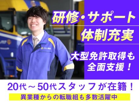【保険制度】 雇用保険、労災保険、健康保険、厚生年金 待遇・福利厚生 【福利厚生】 ■社会保険完備 ■交通費規定支給 ■資格取得支援(運行管理等) ■退職金(規定) ■寸志有(業績考慮) ■福利厚生サービス有 ■大型免許取得費用貸付制度(規) ■車通勤可 ■制服貸与 ■入社祝い金6万円(規定有) ■特別手当(1万~4万円/月)条件あり