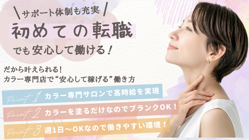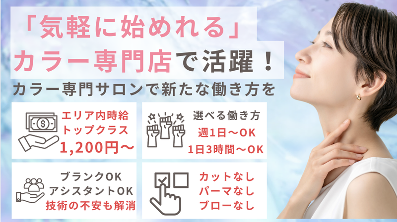 カラー施術だけなので未経験やブランク大歓迎カラーリスト大募集