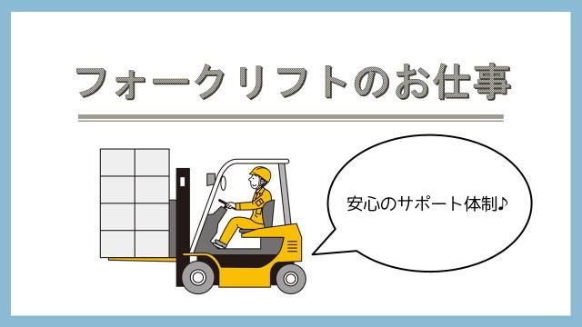 職種 フォークリフト作業 仕事内容 【フォークリフト作業員】 *倉庫内でのお仕事です。 *フォークリフトでの運搬作業及びピッキング作業を行っていただきます。 *フォークリフトのお仕事経験があればすぐに覚えられる作業です。 *一から丁寧に指導しますので、安心してご応募下さい。
