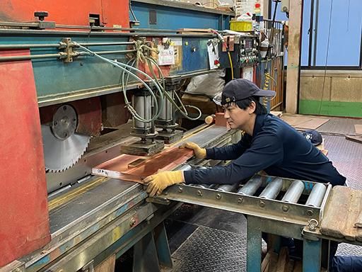 仕事内容 ★東日本シェアトップクラス★ 【便利な世の中を支える金属が『銅』】 1962年に誕生した私たちは、 主に銅や銅合金をメーカーから仕入れ、 加工して販売する一次代理店です。 金属の中でも銅は不純物が少ないため 電気をよく通す・効率がいい という特徴があります。 このような特性から電子部品には 欠かせない金属であり、 ITにはもちろん電気自動車の普及にも 銅を使った部品が多く使われているのです。 便利な世の中は銅が支えていると 言っても良いでしょう。 【会社の強み/高い専門知識】 メーカーから金属を仕入れて加工、 販売する会社はたくさんありますが、 私たちのように銅に精通している会社は 国内でも数社しか無く、 東日本ではシェアトップクラス。 北は北海道から西は九州まで お客様がいます。 お客様曰く銅に関する知識や経験は メーカーの営業よりもあると高く評価され、 お問い合わせが止まりません。 ・大ベテランがしっかり教えます! 成長を急がせません。 ・身の回りにある多くのものに、 私たちが扱う製品が使われています ・昭和37年設立の歴史あり! 【扱う商材】 ・銅や真鍮が90%、レアメタルなど その他の金属が10% 【営業先】 ・電子部品などを製造しているメーカー 【担当業務】 ・金属材料の切断および加工 【作業場所およびチーム構成】 ・切断チームに所属し、主に「板」と 「丸棒」の2種類の材料を扱います。 ・チームは「板」担当と 「丸棒」担当に分かれています。 ・2027年3月末ごろ拡大移転! 空調完備の快適な作業環境を実現します。 【主な業務内容】 <材料の種類と厚さ> 切断する材料は3ミリから 100ミリの厚さがあり、 多様な金属を取り扱います。 <切断作業のプロセス> 薄い材料は短時間で切断できますが、 厚い材料は時間がかかります。 専用の回転ノコギリ(丸ノコ)を 使用して、正確に切断を行います。 <作業の具体的な流れ> 必要な材料を準備し、 計算してどれだけの 部品が取れるかを把握します。 大型の機械で大まかに切断し、 小型の機械でさらに細かく切断します。 切断した部品は適切に保管し、 次の工程に渡します。 【作業の難しさと注意点】 <計算力> 材料からどれだけの部品が取れるかを 正確に計算する力が必要です。 でもそんなに高度な計算じゃないので 安心してくださいね! 【達成感とやりがい】 <達成感> 1日に5~6トンの作業を こなしたときに大きな達成感を感じます。 【新人育成】 <初日から数日目> 新人はまずベテランスタッフの 隣で作業を見学します。 この期間に基本的な 安全対策や作業手順を学びます。 切断機の操作方法や 材料の取り扱いについても 基本的な知識を身につけます。 <1週目から1か月目> 簡単な作業から始め、 実際の切断作業に取り組みます。 ベテランスタッフが付き添い、 実際の作業を通して 具体的な技術を教えます。 計算力を高めるためのトレーニングや、 材料の特徴を理解するための 学習も行います。 <2か月目から3か月目> ある程度の独立した 作業ができるようになり、 切断機の操作に慣れてきます。 さらに難易度の高い作業や、 異なる種類の材料の切断にも 挑戦します。 <3か月目以降> 一通りの作業を自立して 行えるようになります。 チーム内での役割分担も適切に行い、 より高度な技術や効率的な 作業方法を学びます。
