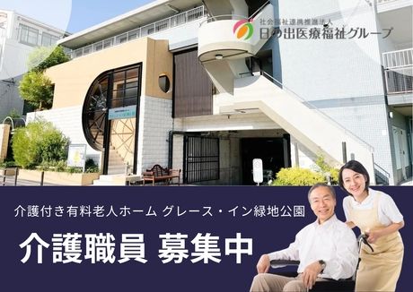 仕事内容 「通勤時間は短い方が嬉しい!」 「ブランクOKの職場で無理なく働きたい!」 「月8万くらい収入が欲しい!」 まずはあなたのご希望・ご要望をお聞かせください! 目指したい働き方を一緒に実現していきましょう! ■勤務開始の相談ok!春からのスタートもokです■ ■すぐに働きたい方は、すぐにご紹介も可能です■ 【仕事内容】 週3日~OK!扶養内勤務OK!吹田市にある介護付き有料老人ホームで介護職員募集中です! 介護付き有料老人ホームでの介護業務をお任せします。 ご入居者様の居室へ訪問し、食事・入浴・排せつ等の介助、日常生活のお手伝いなど、生活を支えていただくお仕事です。いつもまでも幸せにお暮しいただけるよう、お心に寄り添ったケアをお願いします。 未経験の方も安心して働いて頂けるよう多くの研修を実施しております。皆さんが働きやすいように従業員一同全力でサポートいたします! 明るく元気で、熱意や責任感を持って取り組める方、人の役に立つことを考え、社会貢献に携わりたい方のご応募お待ちしております! 【こちらの求人はご紹介求人です】 有料職業紹介事業許可番号:28-ユ-300917 【施設紹介】 「グレース・イン緑地公園」は大阪府吹田市にある介護付き有料老人ホームです。 住宅地として人気の高い服部緑地公園前に立地し、地下1階、地上7階建ての建物の中に、全76戸の専用住居と生活施設、さまざまな介護設備が整っています。 館内はあたたかなぬくもりを感じるサンドイエローの塗壁で色調を統一し、気品ある調度品をしつらえた応接スペースや壁面を飾る絵画など、贅沢に空間を構成していますので、欧州の保養地のプチホテルにいるような気分で日々の時間を過ごしていただいております。 【安心して働ける理由】 ◆働く人が魅力! 現場で働く医療・介護・保育スタッフは、相手のことを考えて行動できる支援のプロたちです。 困りごと、悩みへの相談が気軽にでき、間違っていることには指摘とアドバイスをくれ、何かに挑戦する際には温かく見守ってくれる、そんな理想の上司・同僚が多いのが自慢です。 ◆仕事が魅力! 幅広く事業展開をしているため、社員自身がスキルアップを図り、意識向上させるための場が多くあります。職種にもよりますが、個々の仕事に対する枠組みを明確には設定していません。お客様のためにしたいこと、プラスになることは事業所・職種に関わらず協力し、自分たちの力で作り上げていく土壌があります。 ◆福利厚生が魅力! 日の出医療福祉グループは福利厚生が充実しています!年間休日はたっぷり113日。資格手当・保育手当など、各種手当で収入面も手厚くサポートします。当グループなら、しっかり働いてしっかり休める、社員にとって理想の働き方を実現できます。あなたも心と身体にゆとりを持って働いてみませんか? 産休・育休・介護休暇が取得しやすく、事業所内保育所もありますので、働くお父さんお母さんを応援する環境が整っています。また、本人またはその家族がグループ内の医療事業所を利用した場合、医療費の補助があります。また職種を問わず業務に活かせる外部研修等への参加を奨励しており、参加費用は法人が負担します。 ◆スキルアップを応援! あなたのスキルアップを応援!研修や勉強会など知識を深める教育制度をご用意しています。働きながら学び、成長していける環境があなたをさらに輝かせてくれるはず。「理学療法士の資格を活かして働きたい!」「経験と知識を身につけて成長したい!」そんなあなたにぴったりの求人です。 【ブランクが長いのですが、本当に働けますか?】 →もちろん大丈夫です! 当施設では、育児や介護などで現場を離れていた方の復職実績も多数。 はじめは簡単な業務からスタートし、慣れるまで丁寧にフォローします。 「久しぶりで不安…」という方も安心してご応募ください。 主婦(主夫)さん、ブランク復帰の方、第二新卒など 年齢などに制限はございません!あくまで人柄重視の採用基準です。 誠実で思いやりを持って働いて下さる方であれば大歓迎! スタッフインタビュー「以前はどんなお仕事を?」 ・「以前はパートやアルバイトでグループホームで働いていた」 ・「副業(Wワーク)で夜勤専従で勤務していた」 ・「介護施設や福祉施設を転々とし、短期間しか働いた事が無かった」と経験も様々! ※他にも「グループホームでしか働いた事が無い」「デイサービスしか・・」「特養しか・・」「訪問介護しか・・」等々。 経験がある方もない方も安心してはじめて頂ける環境をご用意しておりますのでご安心ください。20代、30代、40代、50代活躍中!!