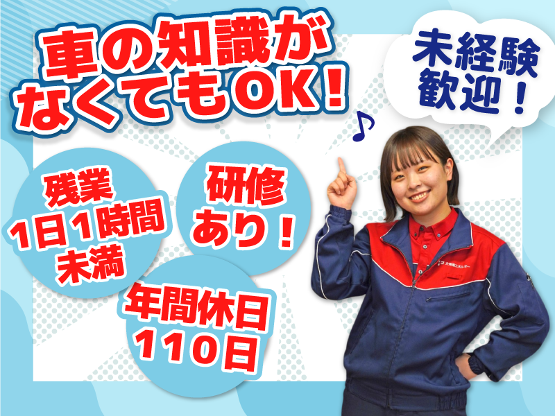 職場環境 当社では元々、車に興味が無かった、 人見知りだったというスタッフも多数います。 そんな方でも一生懸命業務に取り組めば、 先輩が必ずサポートしてくれるので、 経験を問わず活躍することができますよ! 喫煙所:喫煙所あり(屋内) 事業所により、禁煙・屋内喫煙所が 設置されているかは異なります。 屋内喫煙所がある場合は喫煙所への 未成年者の立ち入りを禁止しています。