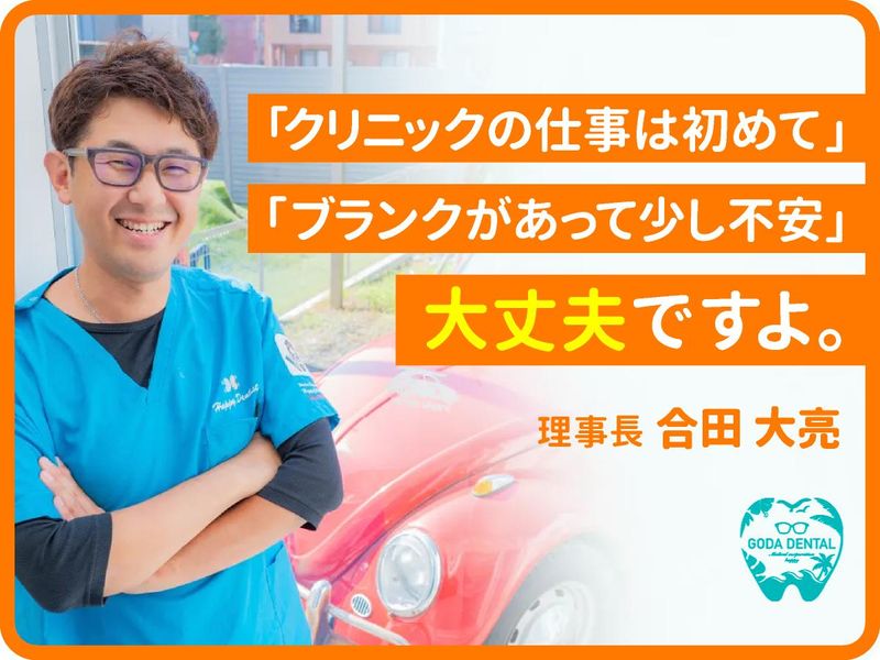仕事内容 ★- 受付・事務スタッフを募集!! 地域密着&安定信頼の 医療法人歯っぴー|ごうだ歯科グループ -★ 私たちが目指しているのは、 「こわくない、痛くない、 みんなが行きたくなるようなクリニック」。 最新の機器と技術を揃え、 ファミレスのように気軽に入れて、 カフェのような明るく清潔な空間。 そんなクリニックで、 受付・事務スタッフとして 働いてみませんか。 あなたにお任せするのは、 ✅受付・会計 ✅予約対応 ✅カルテ入力 など まずは無理なく、 できることからスタート。 マニュアルも完備しており、 一緒に働く仲間たちが 親切丁寧に教えます。 「クリニックの仕事は初めて」 「ブランクがあって少し不安」 そんな方でも、自然と馴染める職場です。 おかげさまで 離職率はほぼ0%。 安心して長く働いてほしいから、 環境づくりにも力を入れています。 ✅完全週休2.5日制 ✅残業ほぼなし ✅ホワイトニング・矯正の割引制度 ✅グループ経営の保育園あり ✅お祭りや運動会など各種イベントあり ★- 働きやすさも、大きな魅力。 大切にしている3つのこと。 -★ ①思いやり 「子どもが急に熱を出して…」 「親の介護で急用が…」 そんな時も、遠慮はいりません。 同じ経験をしてきた仲間がいるから、 自然に助け合える職場です。 ②声がけ 心地よい空気は“ひと言”から。 仲間への「ありがとう」も、 歯の治療が苦手な子どもへの 「よく頑張ったね」も、 すべてが笑顔の種まき。 ③意見出し 待ち時間のこと、SNS発信のこと、 クリニック全体のことまで。 「こうしたらもっと良くなりそう」 そんな気づきやアイデアを大切にします。 改善したいことがあったら、 どんな小さなことでもOKです。 ①②③ができる人なら大丈夫。 ✅受付・事務の仕事から始めたい ✅クリニック/医療業界で働きたい ✅ブランクがあるけど復帰したい ✅子育てが少し落ち着いた ✅人と話すのが好き 「これって私のことだ」と思ったあなた。 安定した環境で、 人のため・地域のために役立つ仕事を 一緒にしませんか。 今いるスタッフも 、 実はほとんどが未経験スタートです。 お気軽にご応募ください!!
