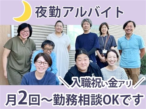 障害者グループホーム ふぉーぴーす 求人概要 障害者グループホーム ふぉーぴーす:看護師/夜勤アルバイト/夜勤アルバイト 月2回から相談可能の夜勤アルバイト求人◎1夜勤1万7515円~3万2585円♪【横浜市栄区、グループホーム、看護師、夜勤アルバイト】採用強化中 職種 看護師/夜勤アルバイト 所在地 〒247-0004 神奈川県横浜市栄区柏陽21-26 給与 日給1万7515円~3万2585円(1夜勤) ※経験・能力・勤務時間により異なる 求人詳細 月2回から相談可能の夜勤アルバイト求人◎1夜勤1万7515円~3万2585円♪【横浜市栄区、グループホーム、看護師、夜勤アルバイト】採用強化中 入職祝い金の支給があるのが嬉しい☆月2回以上で相談ができる夜勤アルバイト・看護師を募集しています♪勤務時間も2種類から選べます☆横浜市栄区の施設で看護師資格を活かしてください◎看護業務ではなく、生活支援業務をお願いします! 職種 看護師/夜勤アルバイト 仕事内容・PR o○oo○o『障害者グループホーム ふぉーぴーす』夜勤アルバイト・看護師募集o○oo○o お仕事は、グループホームにおける夜間業務です。 グループホームで生活する利用者様の生活支援のお仕事を行っていただきます。 マンツーマンの手厚い体制で入居者さまのペースに沿ったケアを目指しています。 メンバーの「我が家」を一緒にサポートする仲間を募集します! ベテランのスタッフが丁寧に申し送りしますので、未経験の方、ブランクのある方も安心してご応募ください。 ♪:;;;:♪:;;;:♪:;;;:♪:;;;:♪:;;;:♪:;;;:♪:;;;:♪:;;;:♪:;;;:♪ 勤務時間は2種類あり、選択することができます! 2種類組み合わせの時間でも相談OK! このサイトからの直接応募で、「入職祝い金」をプレゼントします!!(規定あり) ♪:;;;:♪:;;;:♪:;;;:♪:;;;:♪:;;;:♪:;;;:♪:;;;:♪:;;;:♪:;;;:♪ 雇い入れ後の業務内容の変更の範囲および就業場所の変更範囲の詳細は面談時にお伝えします。 雇用形態 夜勤アルバイト 契約期間 雇用期間の定めあり 上限1年 契約更新あり ※勤務評価、態度、能力、および経営状況も踏まえて判断する