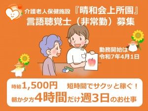 1日4時間☆週3日でのお仕事♪ワークライフバランス充実◎介護老人保健施設「晴和会上所園」