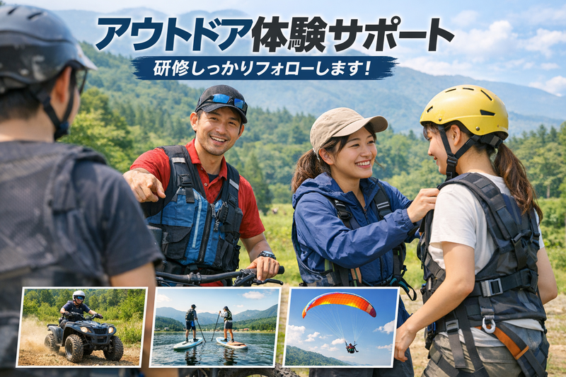 仕事内容 自然体験を支える仕事|アウトドア運営サポート(アルバイト) 未経験OK/正社員登用あり 「アウトドアの仕事=体力勝負、経験者向け」 そんなイメージを持っている方も多いかもしれません。 でも今回募集するのは、体験を裏側から支える“サポートポジション”。 特別な資格や経験がなくても、自然の中で人の「楽しかった」を支える仕事です。 ● まずは“裏方サポート”から いきなりインストラクター業務をお任せすることはありません。 最初にお願いするのは、体験ツアーをスムーズに進めるためのサポート業務です。 ・道具や機材の準備 ・体験前の簡単な案内サポート ・ツアー中の安全確認 ・進行の補助 先輩スタッフが常に近くにいるため、分からないことはすぐに確認できます。 ● 未経験でも始めやすい理由 ・すべてのアクティビティを覚える必要はありません ・興味のある分野、できそうな内容からスタート可能 ・苦手なことを無理に任せることはありません 一人ひとりのペースに合わせて、少しずつ仕事を覚えていける環境です。 ● 具体的な業務内容 アウトドア体験の運営をサポートしていただきます。 【対応するアクティビティ】 ・パラグライダー ・SUP ・オフロードバギー ・マウンテンバイク 【その他の業務】 ・体験前の準備、簡単な説明 ・ツアー中の進行補助、安全確認 ・機材の準備、片付け、簡単な点検 ・集合場所から体験スポットまでの送迎 ・設備の簡易メンテナンス ・フィールド内の環境整備(草刈りなど) ※担当内容は希望・適性を考慮します ※補助業務が中心です ● アルバイトから広がるキャリア ・アルバイトスタートOK ・希望や適性に応じて正社員登用制度あり ・事業拡大中につき、将来的に運営・育成に関わるチャンスあり ・パラグライダーは、習得後に担当可能となった場合は手当支給 「まずはアルバイトで試してみたい」そんな方にもぴったりです。 ● こんな方に向いています ・アウトドアに興味がある ・体を動かす仕事をしてみたい ・人と関わる仕事が好き ・未経験から新しいことに挑戦したい ・将来は安定した働き方も考えたい ● 応募について 経験・資格は一切問いません。 「自分にできるか分からない」 「まずは話を聞いてみたい」 そんな段階でのご応募も大歓迎です。 仕事内容や働き方については、面談で丁寧にご説明します。 少しでも気になった方は、ぜひお気軽にご応募ください。