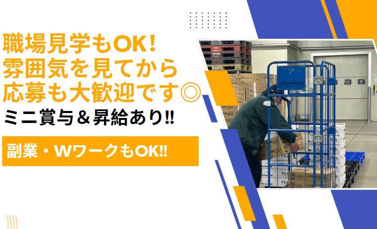 仕事内容 ◆◇◆◇◆◇◆◇◆◇◆◇◆◇◆◇◆◇◆◇◆◇◆ \ カンタン軽作業!未経験でも安心スタート♪ / ミドル・シニア世代も活躍中! モクモク作業で人気のピッキングや検品♪ 週3日~、1日4時間~OK × ミニ賞与あり! ◆◇◆◇◆◇◆◇◆◇◆◇◆◇◆◇◆◇◆◇◆◇◆ ======== 【仕事内容】 ======== 簡単なピッキング作業です! うれしいミニボーナスあり! 数えて箱に入れるだけの簡単作業! 商品名、数が記入してある 紙のリストをもとにピッキングします。 冷蔵・冷凍庫内での作業になりますが、 防寒着もあるので安心です。 <具体的には…> 紙のリストを見ながらピッキングします。 商品を各センターごとに仕分ける。 ↓ 1番目の商品を指定の数だけ数えて箱に入れる。 ↓ リストに済のチェックする。次、2番目の商品へ。 そうです!カンタン!このくり返し! リストを見ながら順番に入れるだけ! 基本的に重いものではないので力仕事ではありません。 ============= 【✨アピールポイント✨】 ============= ✅教え上手な先輩パートさんがマンツーマンでサポート ✅20代、30代、40代、50代、30名男女活躍中 ✅60歳以上の方も応援!ミドル・シニアも活躍中 ✅子育て落ち着いた主婦(夫)も活躍中 ✅ミニ賞与あり ✅有給休暇は消化しています ✅自分のペースでOK それよりも間違えず正確に…が大事! ✅食堂有、レンジ、ポット、自販機有 ✅シーズンの限定商品や新商品を だれよりも早く見ることもできて楽しい! ✅上下快適な防寒着貸与(防寒着の中の服装は自由) ============== 【✨こんな方におすすめ✨】 ============== ✅1人で気楽にもくもく作業したい方におススメ ✅子どもの学校行事等での休みや 急な体調不良の当日休みも対応しています。 代理も探さなくてOK! ✅職場見学もOK!雰囲気を見てから応募も◎ ✅Wワーク(かけもち)(副業)で、夕方から出勤もOK 希望シフト制、曜日自由、短時間、高時給、力仕事なし、梱包、セット、検品、倉庫、食品、仕分作業、中高年活躍中、ミドル活躍中、安定、フリーター、深夜バイト、作業
