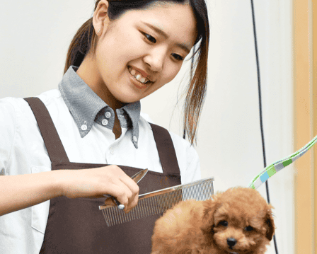 仕事内容 初めてのワンちゃんから 定期的に来てくれるワンちゃんまで 毎日たくさんの出会いがあります。 その子に合ったお手入れやトリミングを、 その子に負担がかからないように 行っていくのがお仕事です。 日々の業務を通じて できることが増えたり、褒められたり、 嬉しくなることもたくさんあるんですよ。