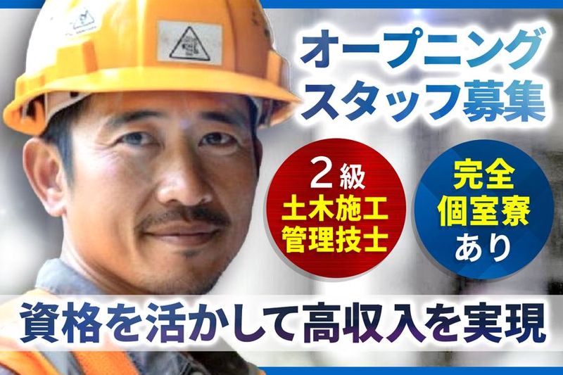 仕事内容 \オープニングスタッフ募集!/ 資格を活かして、安定×高月給を手にしませんか? 【新しい環境への一歩をサポート!】 当社では安心して一歩踏み出せるよう、入社祝い金10万円(規定あり)を支給! まっさらな環境だからこそ、上下関係やしがらみもなく、全員が同じスタートラインです。 「新しい職場で心機一転頑張りたい」ーそんな想いを後押しする環境を整えて、あなたのご応募をお待ちしています。 ■住み込み可能!【完全個室】1人部屋の寮完備! ※写真/間取りはイメージです。 ■被災地の役に立てる仕事 ※こちらの求人は2級土木施工管理技士資格が必須になります \あなたの力で、能登の未来に希望を!/ 復興の“仕上げ”を担う、施工管理の力が今、必要です。 震災からの復興が進む能登半島。今、求められているのは「現場を指揮できる施工管理」の存在です。 舗装・整地・清掃・構造物設置など、生活インフラの整備はこれからが本番。現場を動かし、工程を管理するあなたの力が、地域の未来を形づくります。 【オススメポイント】 ■ 「復興」という使命ある現場にプロとして関われる ■ 現場は長期稼働の見込み。腰を据えて働ける環境です ■ 住み込み寮あり。生活面の不安もサポート ※写真/間取りはイメージです。 「都会の忙しすぎる日々から抜け出したい」「無理なく、でも意味のある仕事がしたい」そんなあなたにこそ届けたい仕事があります。 ※残業はほとんどありません! ■具体的なお仕事内容 復興土木工事における施工管理業務全般をお任せします。 主な業務内容 ・工程管理・安全管理・品質管理 ・重機オペ・職人との調整 ・協力業者や資材の手配 ・進捗報告・写真管理・各種書類対応 など 現場は能登半島エリア。 重機による掘削・埋戻し、舗装準備、構造物基礎工事など、地域の基盤をつくる公共性の高い工事に携わります。 住み込みOK・【完全個室】1人部屋の寮完備なので、遠方からの応募も安心です。 =================== 最後の転職は“安心”で選ぶ。 =================== 「まだまだ稼ぎたい」「最後の転職にしたい」ー そんな方にこそ選ばれている現場です。 当社では、長期安定の契約を前提としており、毎月の収入をしっかり確保しながら腰を据えて働くことができます。 さらに、完全個室の1人部屋寮を完備。 仕事終わりは誰にも気を遣わずしっかり休息。 「家族のために稼ぎたい」「生活費を抑えて貯金を増やしたい」など、単身赴任の方にとっても大きな安心につながっています。 ========== 復興に必要な存在 ========== 工程や安全を守る施工管理の存在が、復興の“仕上げ”には欠かせません。 多くの人の生活を支える現場で、あなたの判断が活きる仕事です。