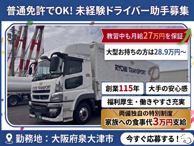 仕事内容 接客や人間関係の疲れ、ここでリセットしませんか? - 「常に誰かに気を遣う毎日に疲れた」 「将来が見えない不安定な働き方を変えたい」 そんな想いを抱える20代・30代が 今、続々と「両備」を選んでいます。 ■ Point 1:自分だけの時間と空間を確保 慣れれば、運転中は誰にも 邪魔されないあなただけの時間。 煩わしい人間関係や、突発的な クレーム対応に追われることはありません。 ■ Point 2:115年の歴史が守る「本物の安定」 岡山県トップクラスの両備グループ。 景気に左右されない生活物資の輸送に加え、 業界では珍しい「固定給制」を採用。 さらに、ICT技術(R-Teams)の導入で 待機時間を削減し、スマートな働き方を 実現しています。 ■ Point 3:普通免許から「大型のプロ」へ 大型免許の取得費用は会社が「全額」負担。 教習中も月給27万円を保証するので、 収入を下げずにスキルアップが可能です。 最大3ヶ月の丁寧な横乗り研修があり、 バックカメラやナビも全車完備。 「運転が不安」という方もご安心ください。 - 【 具体的な仕事内容 】 倉庫や工場などへの拠点間輸送を担当。 決まったリズムで無理なく働けるのが特徴です。 【 家族も喜ぶ!ユニークな福利厚生 】 「人軸経営」を掲げる両備だからこそ、 社員のご家族まで大切にします。 ・入社3ヶ月:家族との食事代3万円支給 ・入社3年目:家族旅行の費用5万円支給 ・お子様の入学時:ランドセルを贈呈 「会社に守られている」という安心感を、 あなたも実感してみませんか。