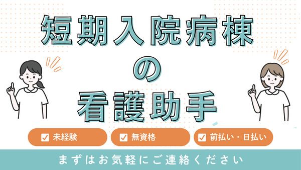 仕事内容 【 未経験大歓迎/お気軽にご連絡ください♪ 】 ▼▼ この求人のPOINT! ▼▼ ◎働き易い勤務日数! ✅ 週2日~OK! ✅ 土日のみ、曜日固定も相談可! ✅ WワークOK! ◎夜勤のみのお仕事! ✅ 1勤務2万7000円 ✅ 月12日勤務で32万4000円! ◎幅広い年代のスタッフ活躍中! ✅ 20代~60代までが在籍! ✅ シニア活躍中の職場! ✅ 主婦さん活躍中の職場! ◎経験は問いません! ✅無資格OK! ✅未経験OK! ✅ブランクOK! ◎ 前払い・日払いOK! ※規定あり \ 仕事内容 /  ̄ ̄V ̄ ̄ ̄ ̄ ̄ ̄ ̄ 提携する病院内の一般病棟にて、 看護助手として患者様のサポートをお任せします。 【具体的な仕事内容】 ・ベッドシーツの交換 ・看護師のサポート (医療器具の準備・片付け) ・食事/入浴介助 等 ━━…━━…━━…━━…━━…━━ \こんな方はぜひ/ 日中に自由に使える時間を確保したい! 収入も必要! 資格、経験、スキルはないが、 体力には自信がある! WワークOKの職場を探している! ━━…━━…━━…━━…━━…━━ \こんな悩みありませんか?/ 決して大手ではございませんが、 その分臨機応変に対応できることが 強みだと思っています。 今の会社に不満がある方や 実現したいこと、 些細なことでもご相談ください。 ・派遣会社担当者の連絡が遅い ・個別対応をしてくれない ・初回契約時の就業規則が変更できない ・勤務開始まで時間がかかる など ━━…━━…━━…━━…━━…━━