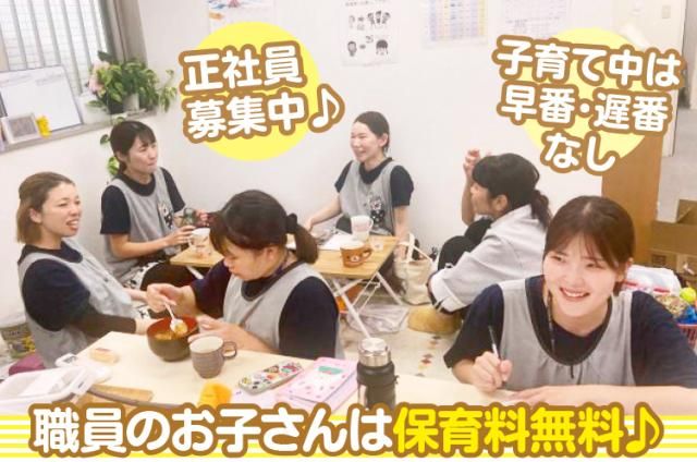 12月より産休に入るスタッフがいる為、新スタッフ大募集♪手厚い待遇◎♪職員のお子さんは保育料無料! *12月より産休に入るスタッフがいる為、 新スタッフ募集!! / シフトは希望を考慮!残も少なめ♪ \ 完全週休2日制(日曜+1日)他、大型連休、 育休、有休、産前産後休など、充実の休日で、さらに 有給休暇とは別に年5回休暇が自由に取れますので リフレッシュもバッチリ☆ / 嬉しい特典♪ \ ◆別フロアに休憩室完備! ◆種類豊富なドリンクが無料で飲み放題♪ ◆疲れた体に沁みるおやつを常備♪ ◆職員絶賛の有機野菜やお米を使った 園内での手づくり給食(なんと300円)有♪ ◆職員のお子様は保育料無料(規定有)!