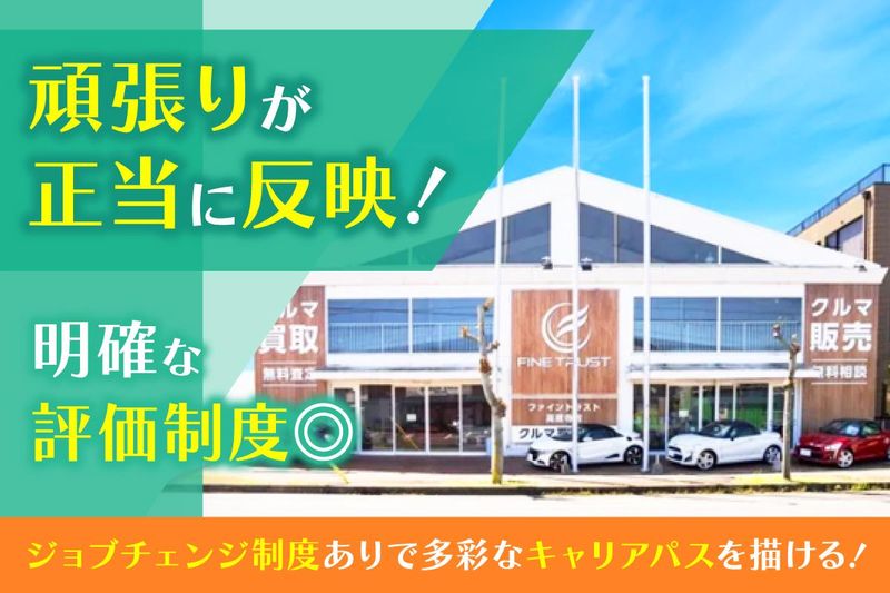 仕事内容 仕事も成長も、もっと前向きに。  ̄ ̄ ̄ ̄ ̄ ̄ ̄ ̄ ̄ ̄ ̄ ̄ ̄ ̄ ̄ マネジメント経験を活かしながら、 チームづくりやマーケティング戦略まで 幅広く関われるポジションです。 【 このお仕事の魅力 】 □月給40万円〜+成果に応じた手当支給 □年齢に関係なく、実力でキャリアアップ □管理職の平均年齢32歳と、若手も活躍中 □戦略立案や数値分析など、 マーケティング業務にも挑戦可能 □年間休日125日以上/有給取得率90%超 □安定性と将来性を兼ね備えた成長企業 【 会社について 】 私たちファイントラストは、 販売・買取・整備・保険など クルマに関するあらゆる サービスを提供しています。 愛知・岐阜エリアを中心に 14店舗を展開し、今後も新規出店を予定。 安定した経営基盤のもとで、 前向きに挑戦できる環境が整っています。 ―――――――――――――――――――― □■ おまかせしたい業務内容 ■□ *テレアポ部門の統括、営業との日程調整 *KPIやデータを用いた課題発見・改善提案 *売上向上のためのマーケティング施策立案 *チームの目標設定・進捗管理・育成 *経営方針に基づいた 戦略の実行と組織づくり □■ このポジションの特長 ■□ *経営に近いポジションで、 戦略にも関われる裁量の大きさ! *明確な評価制度で、 努力がしっかり報われる *出した成果をしっかり還元! 責任ある立場への早期抜擢も可能 *部署を超えて 相談しやすいオープンな社風 安心してスタートできる、サポート体制  ̄ ̄ ̄ ̄ ̄ ̄ ̄ ̄ ̄ ̄ ̄ ̄ ̄ ̄ ̄ ̄ ̄ ̄ ̄ ̄ 入社後は、今の課題を 一緒に整理しながら目標を設定。 管理職同士の連携も強く、 「ひとりにしない」 職場づくりを大切にしています。 ✅部門を超えた連携体制で、 相談しやすい雰囲気 ✅チームで目標を追う 文化が根づいています ✅入社後も段階的に 業務を覚えていけるので安心 キャリアの選択肢が広がる会社です  ̄ ̄ ̄ ̄ ̄ ̄ ̄ ̄ ̄ ̄ ̄ ̄ ̄ ̄ ̄ ̄ ̄ ̄ ̄ ̄ 会社の成長に合わせて、 新しいチャンスも どんどん生まれています。 ✅売上100倍以上の成長実績 ✅2025年も複数店舗の出店が決定済み ✅新しい役職や事業にも挑戦しやすい環境 自分らしい働き方、応援します  ̄ ̄ ̄ ̄ ̄ ̄ ̄ ̄ ̄ ̄ ̄ ̄ ̄ ̄ ̄ ̄ ̄ ̄ ̄ ̄ 希望に応じて他部門や 他職種へのジョブチェンジも可能。 評価基準が全社員に共有されており、 納得感を持って成長を目指せます。 ✅キャリアチェンジ制度あり ✅明確な評価制度で目標が立てやすい ✅多様なスキルを活かして長く働ける環境